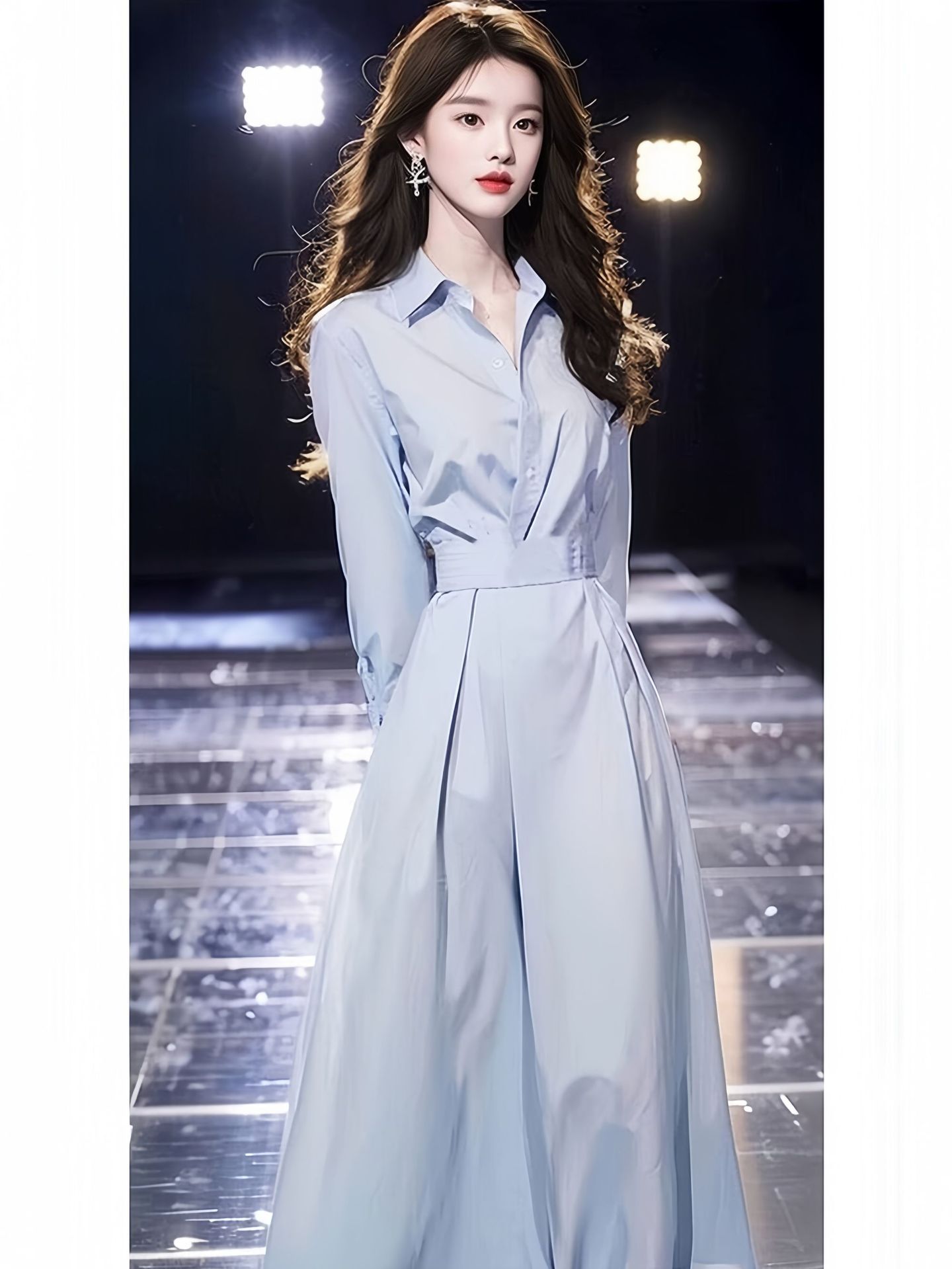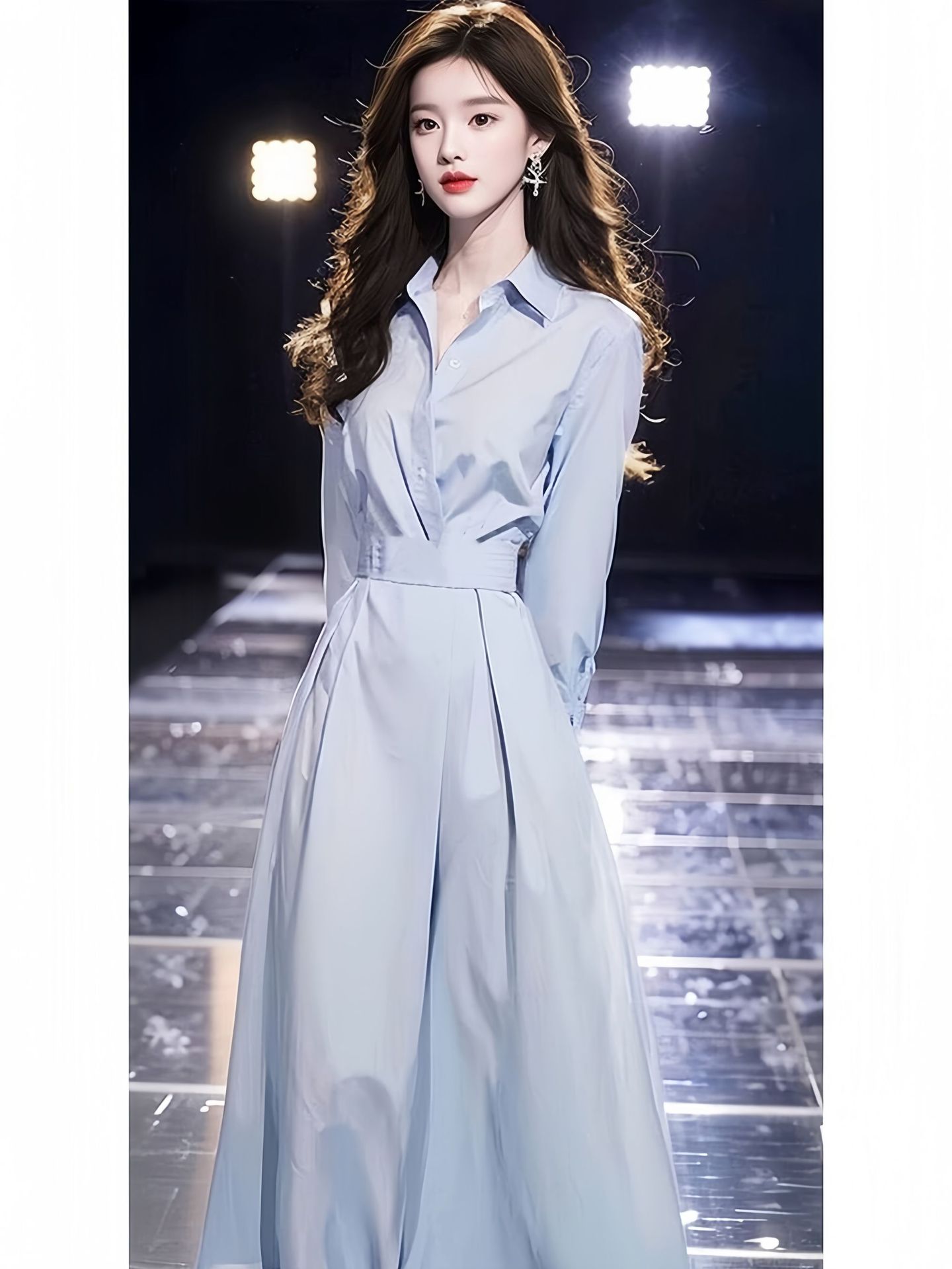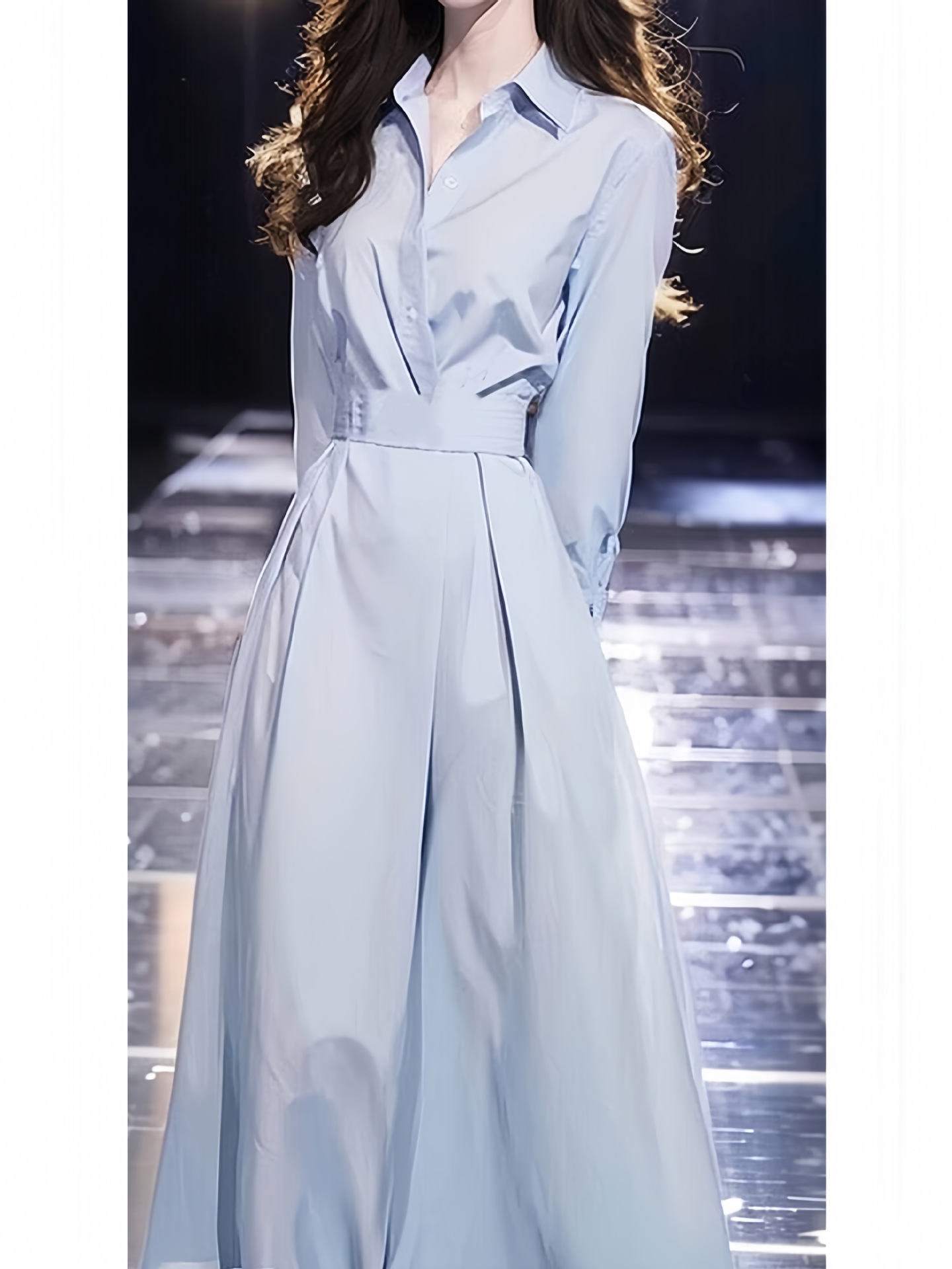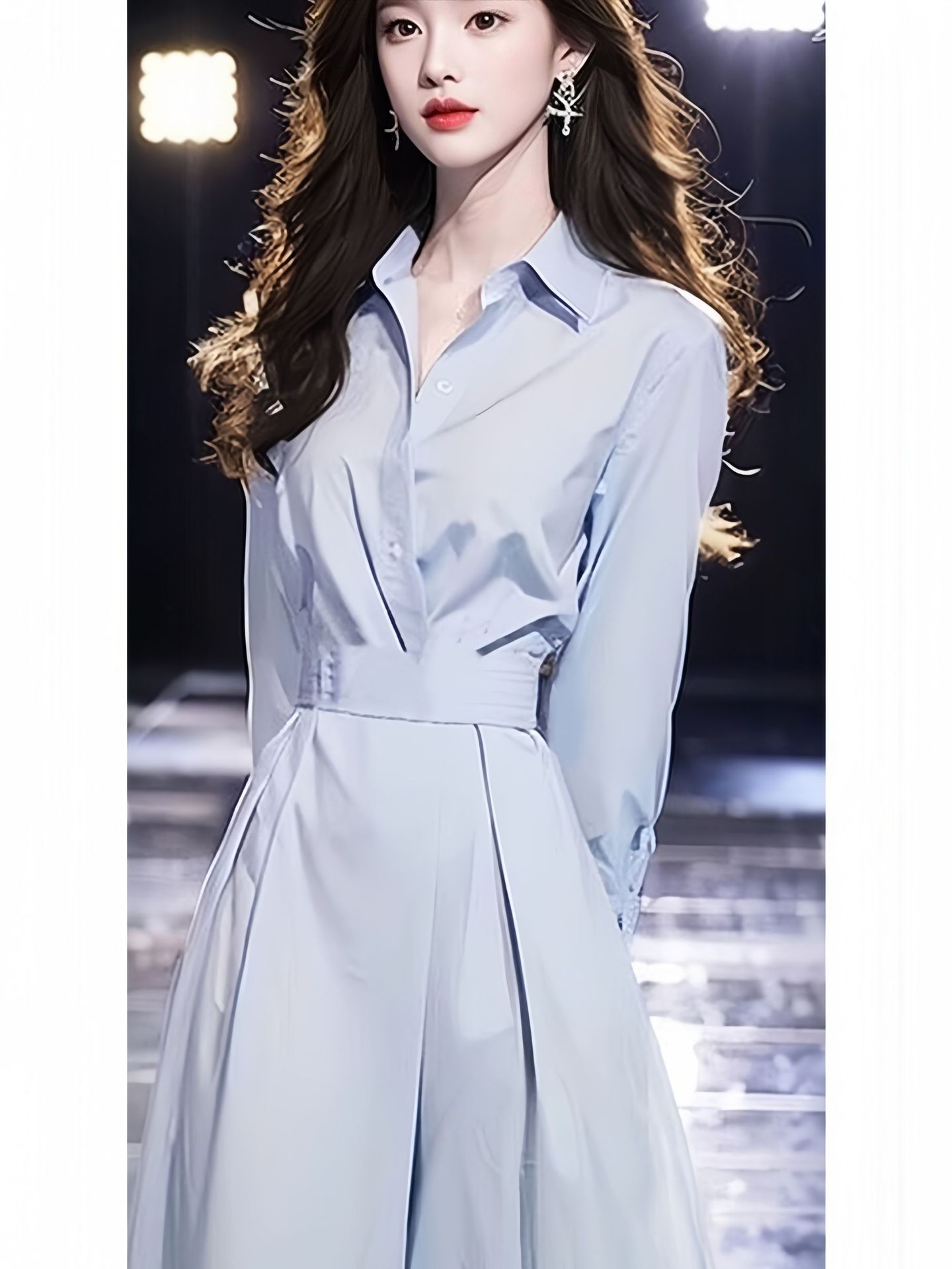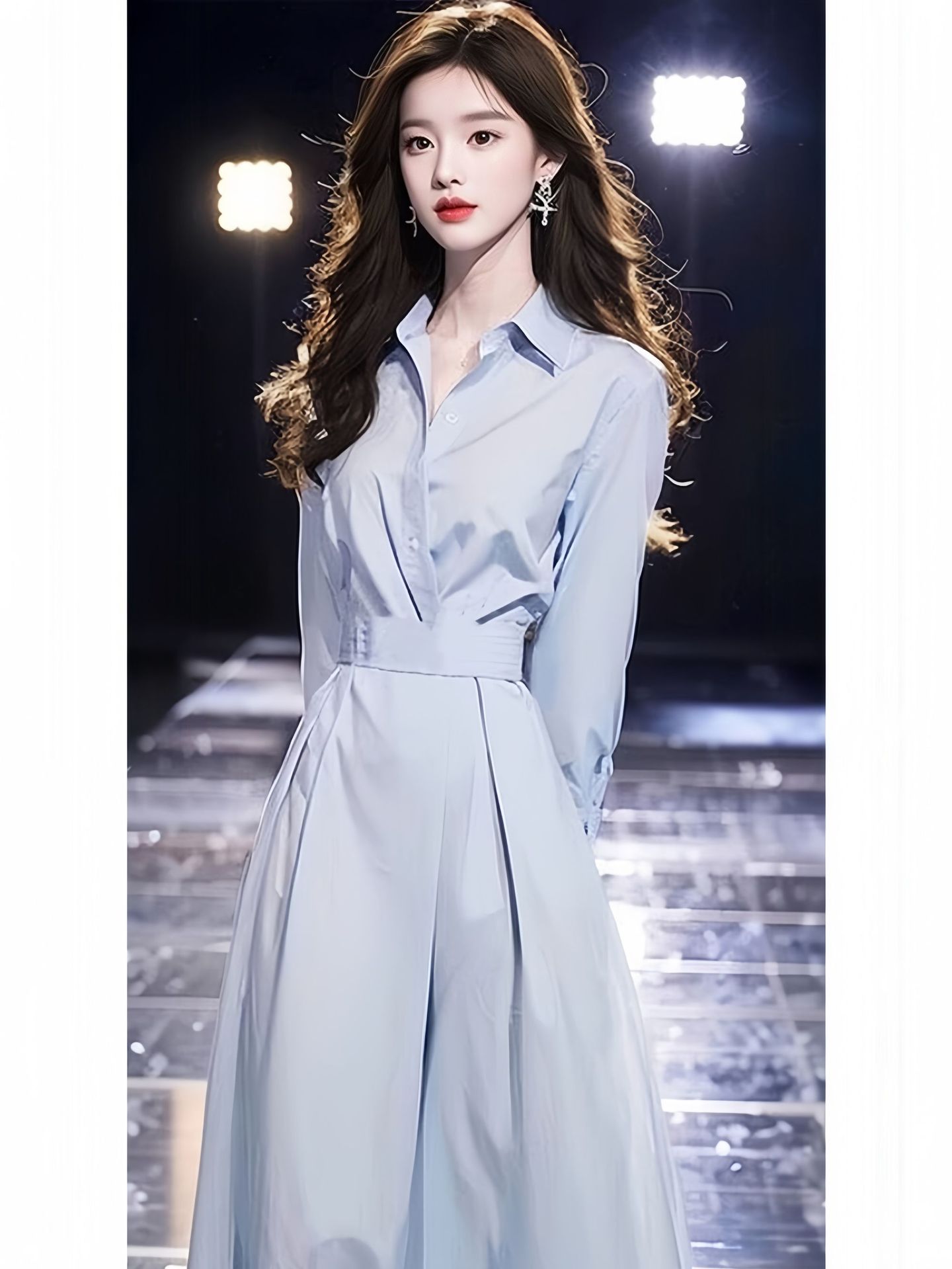 봄 공식적인 경우 허리를 원피스 어린이 2025 파란 셔츠 원피스 튀지 않는 우아한 절묘한 틈새스토어 가기