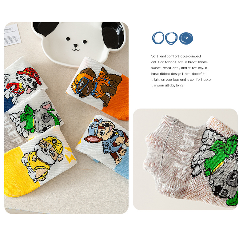 1-12 세 소년 양말 만화 개 여름 메쉬 얇은 튜브 양말 유행 멋진 남자의 보물 통기성 어린이 양말면
