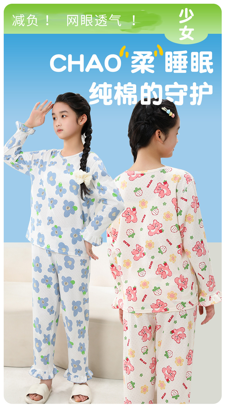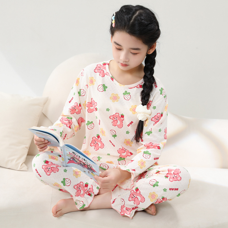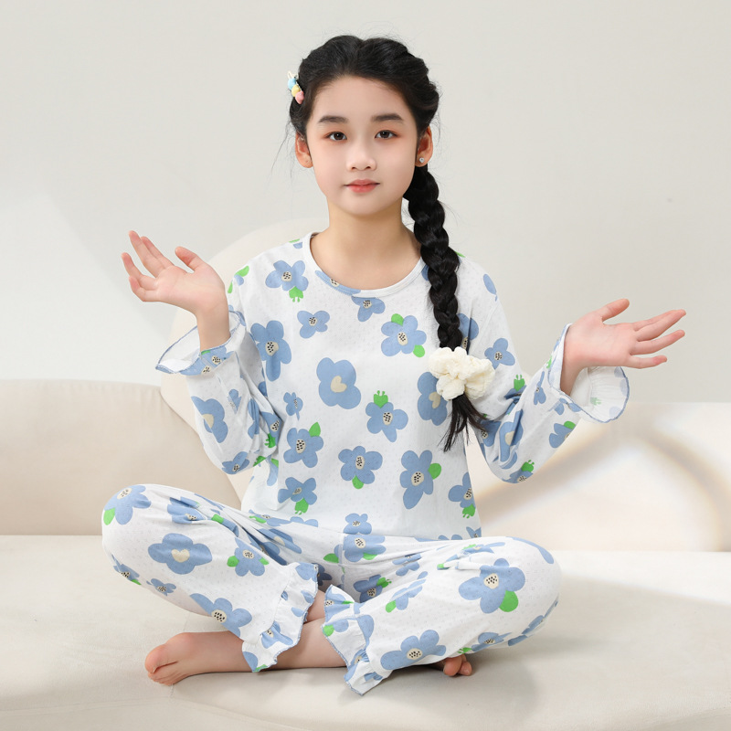 25 개의 새로운 면 어린이 홈 옷 여아 러플 에어컨 셔츠 세트 중대형 어린이를위한 긴 소매 투피스 파자마