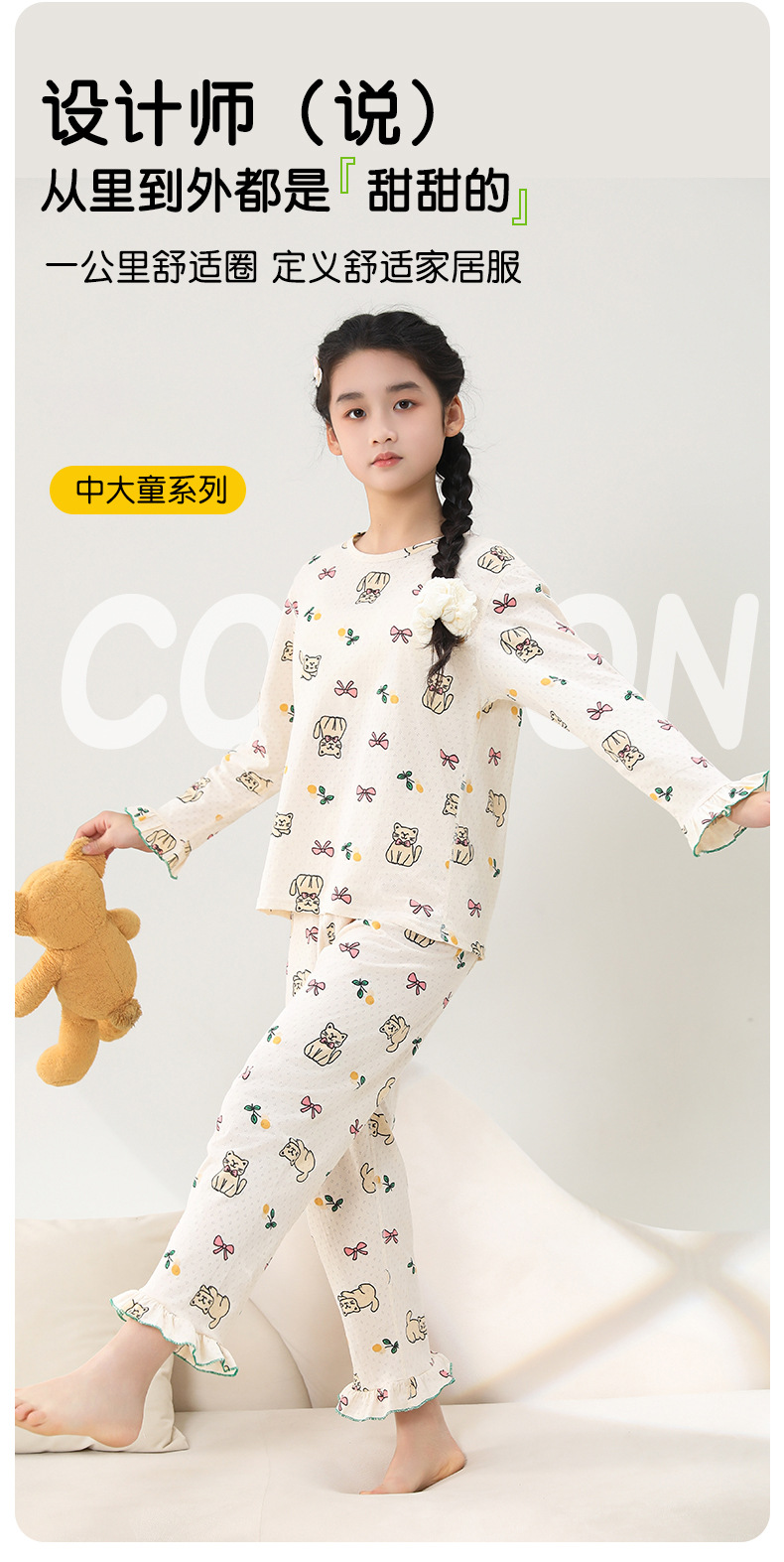 25 개의 새로운 면 어린이 홈 옷 여아 러플 에어컨 셔츠 세트 중대형 어린이를위한 긴 소매 투피스 파자마스토어 가기