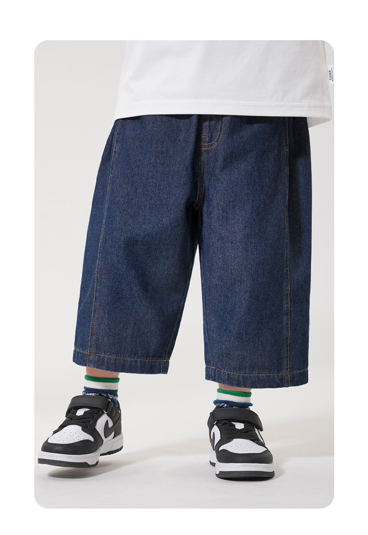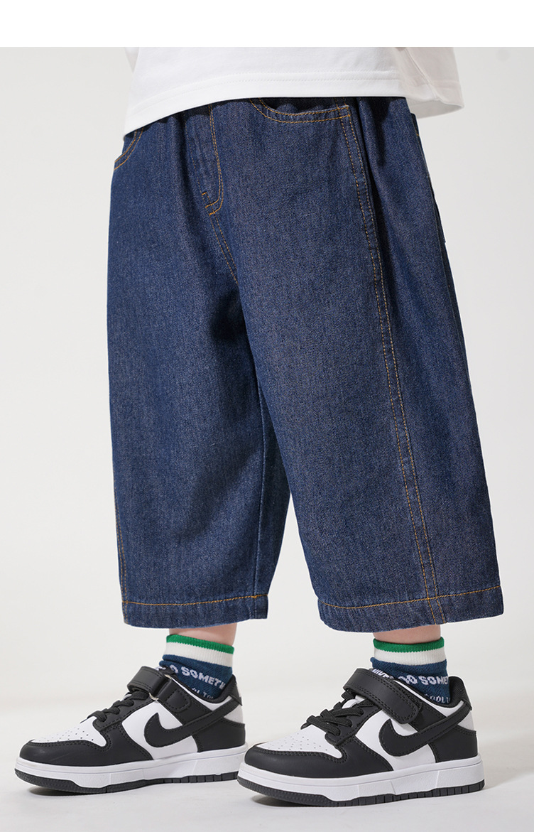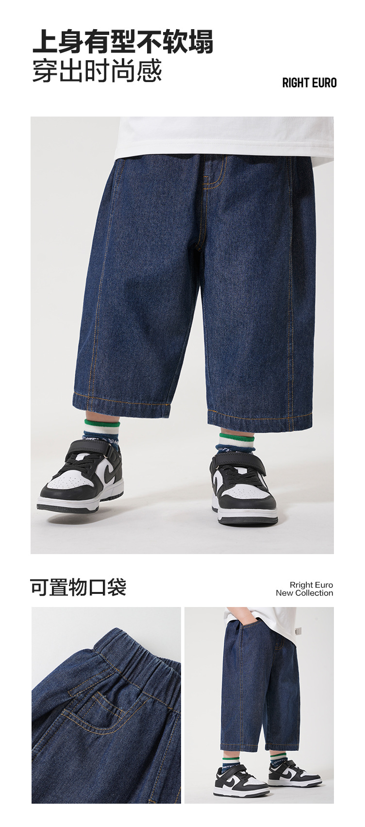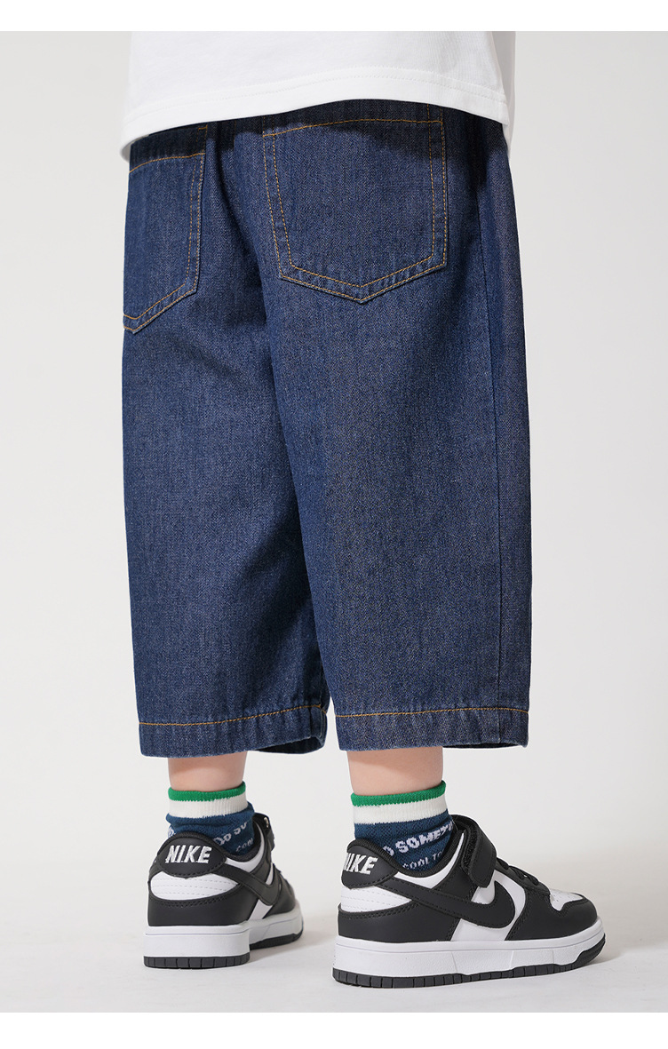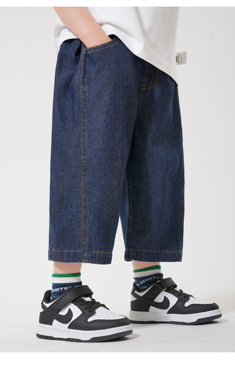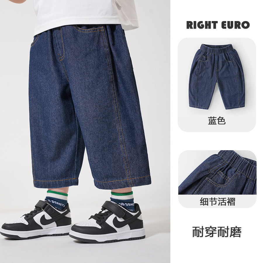 오른쪽 유럽 소년 청바지 카프리 바지 여름 착용 어린이 착용 어린이 아기 어린이 여름 얇은 중간 길이 바지 여름 유행