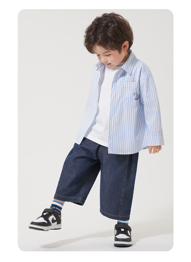 오른쪽 유럽 소년 청바지 카프리 바지 여름 착용 어린이 착용 어린이 아기 어린이 여름 얇은 중간 길이 바지 여름 유행스토어 가기