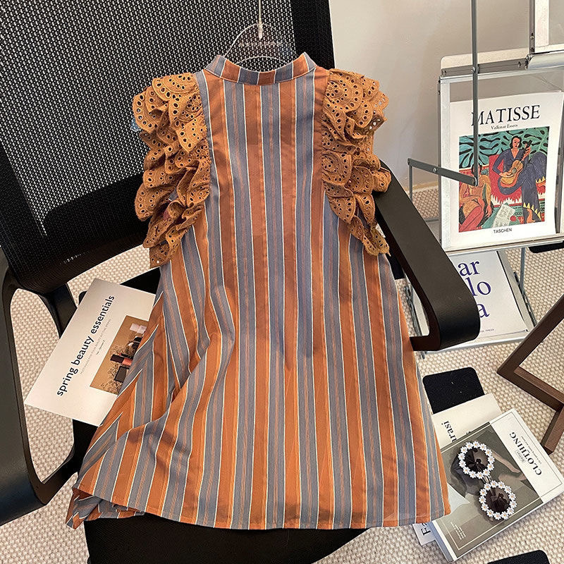 소녀 원피스 2024 새로운 여름 서양 스타일 유행 줄무늬 비행 소매 스커트 큰 어린이 여름 원피스