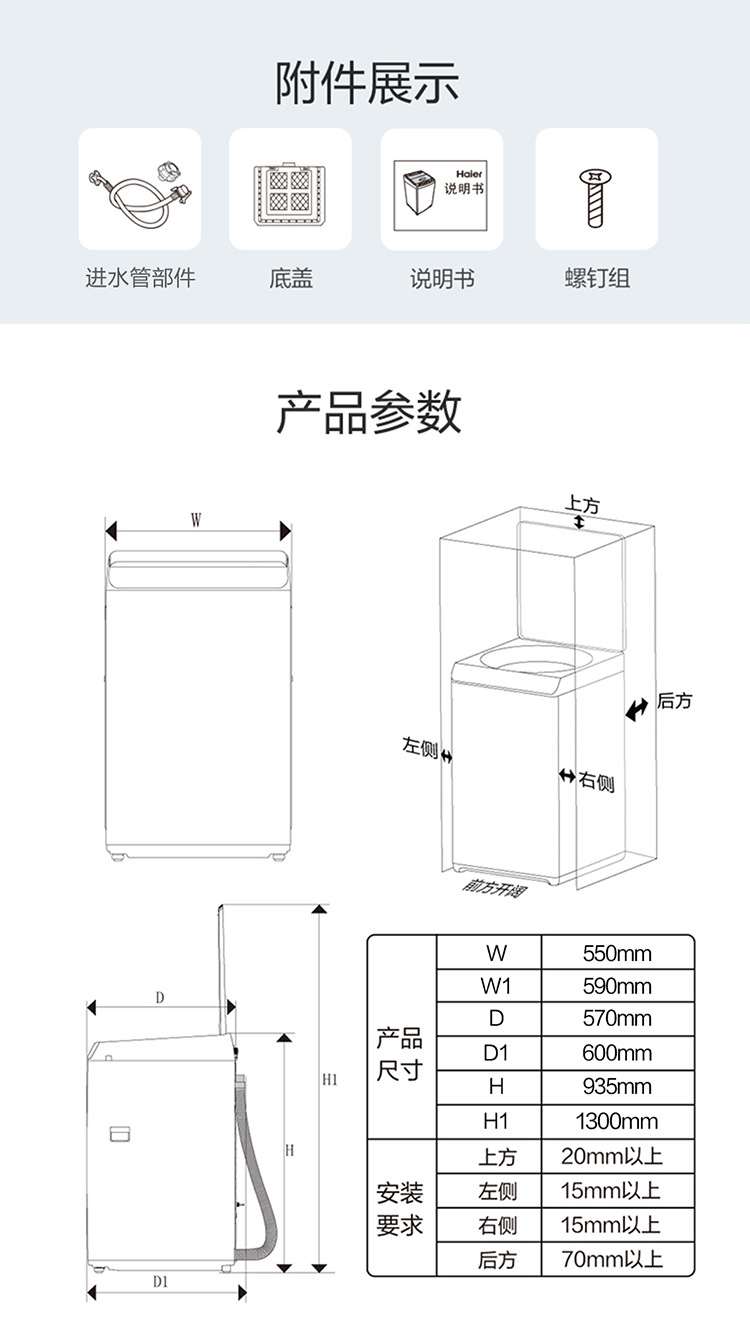 하이얼 (하이얼) 10KG 자동 맥동 세탁기 주파수 변환 레벨 1 가정용 XQB100-Z6088