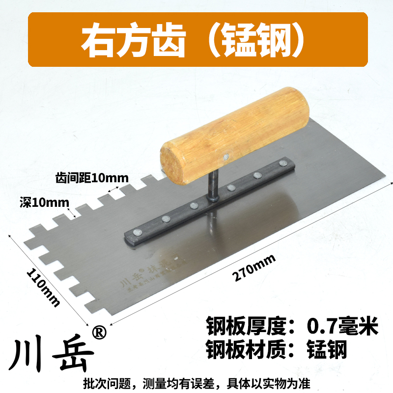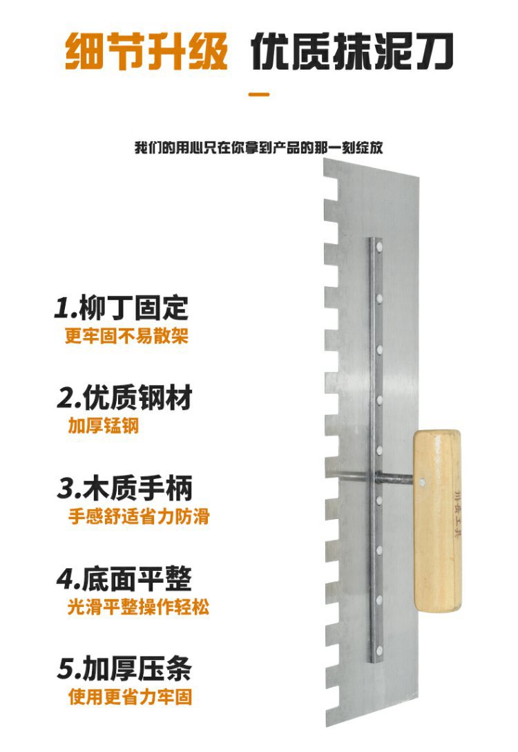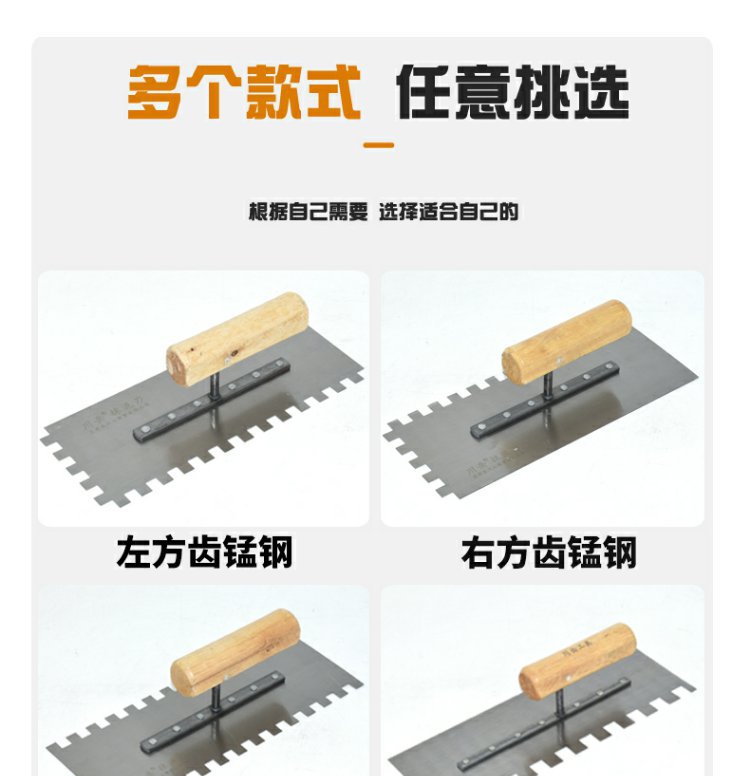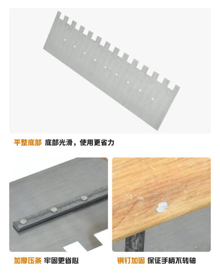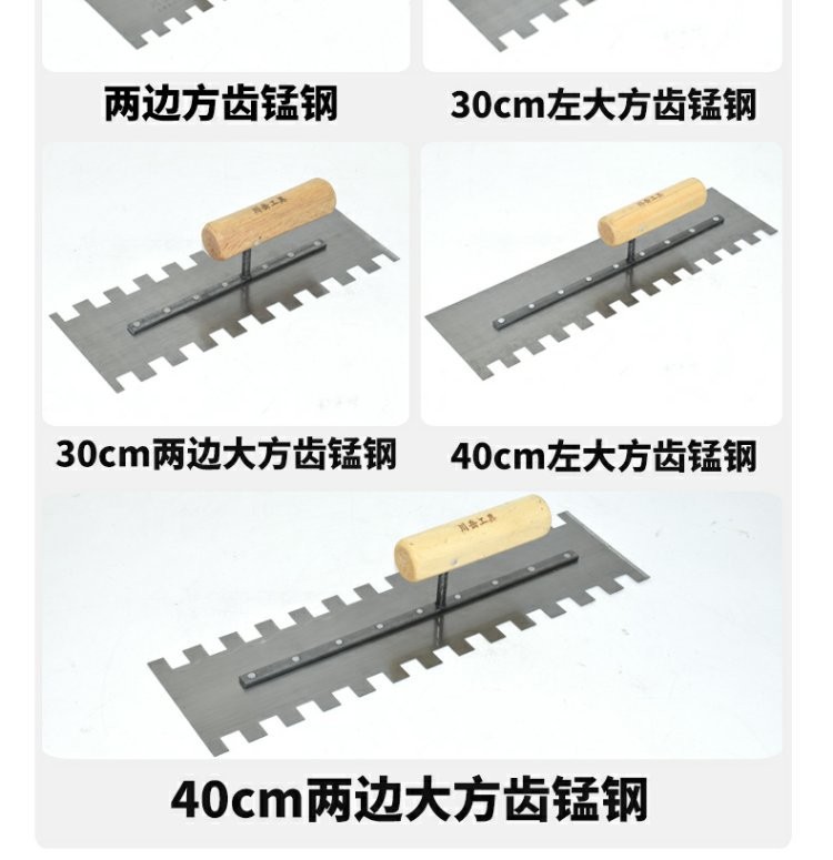 치아 석고 나이프가있는 다팡 치아 망간 강철 흙손 톱니 타일 접착제 흙손 긁는 벽돌공 배치 회색 칼스토어 가기