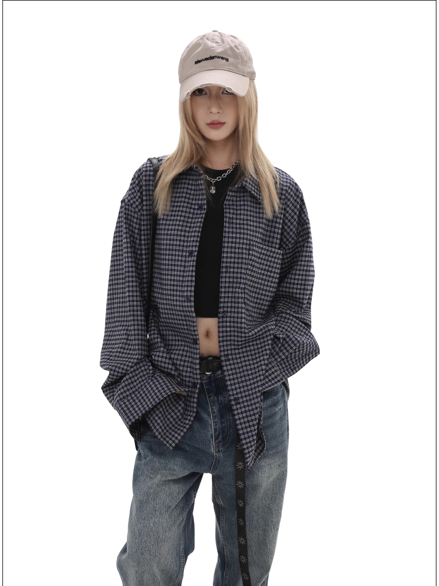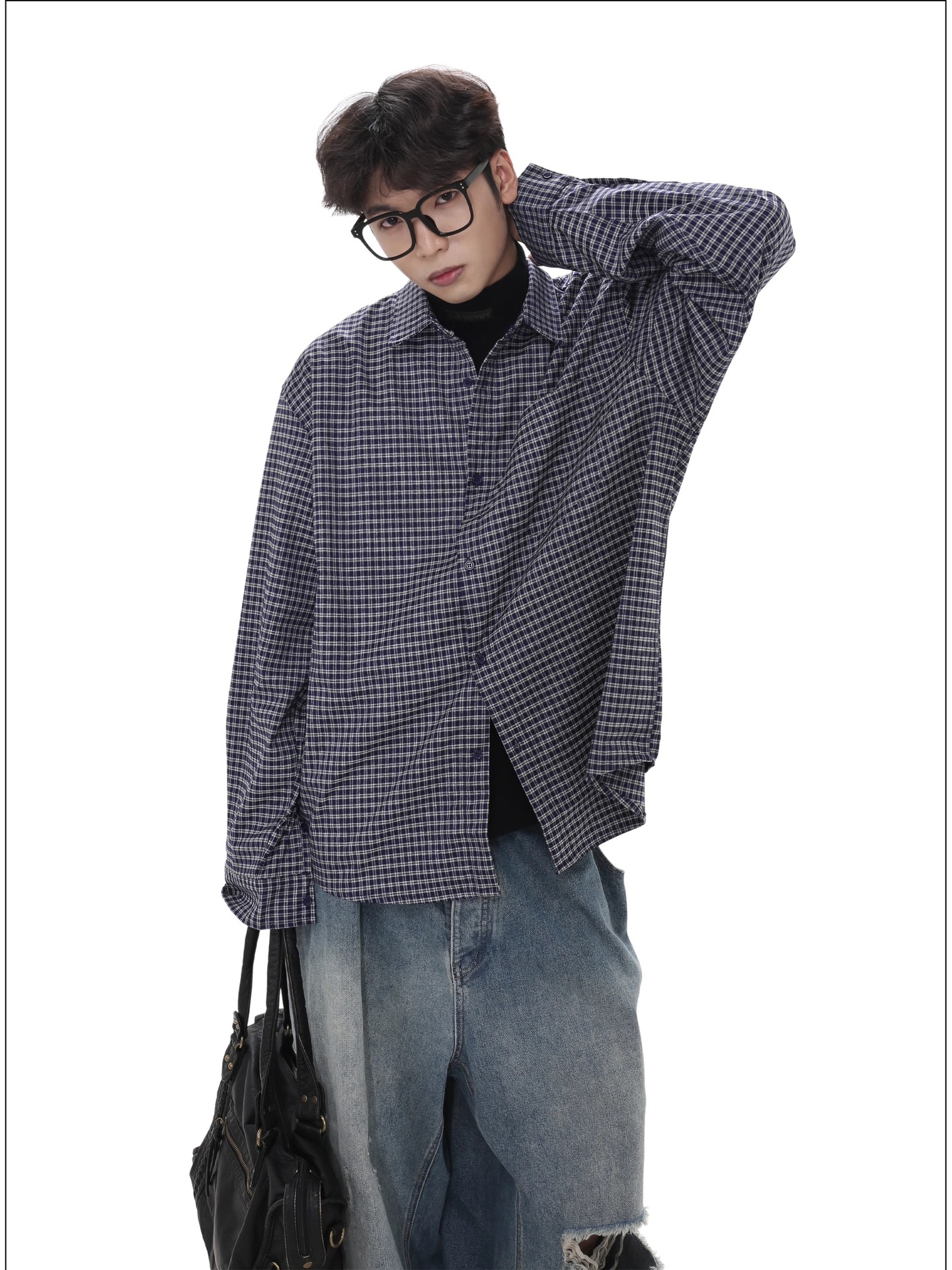 레트로 이완 센스 고급 체크 셔츠 남자 2025 년 봄과 가을 새로운 패션 브랜드 게으른 느슨한 캐주얼 새로운 스타일 잘 생긴 셔츠스토어 가기