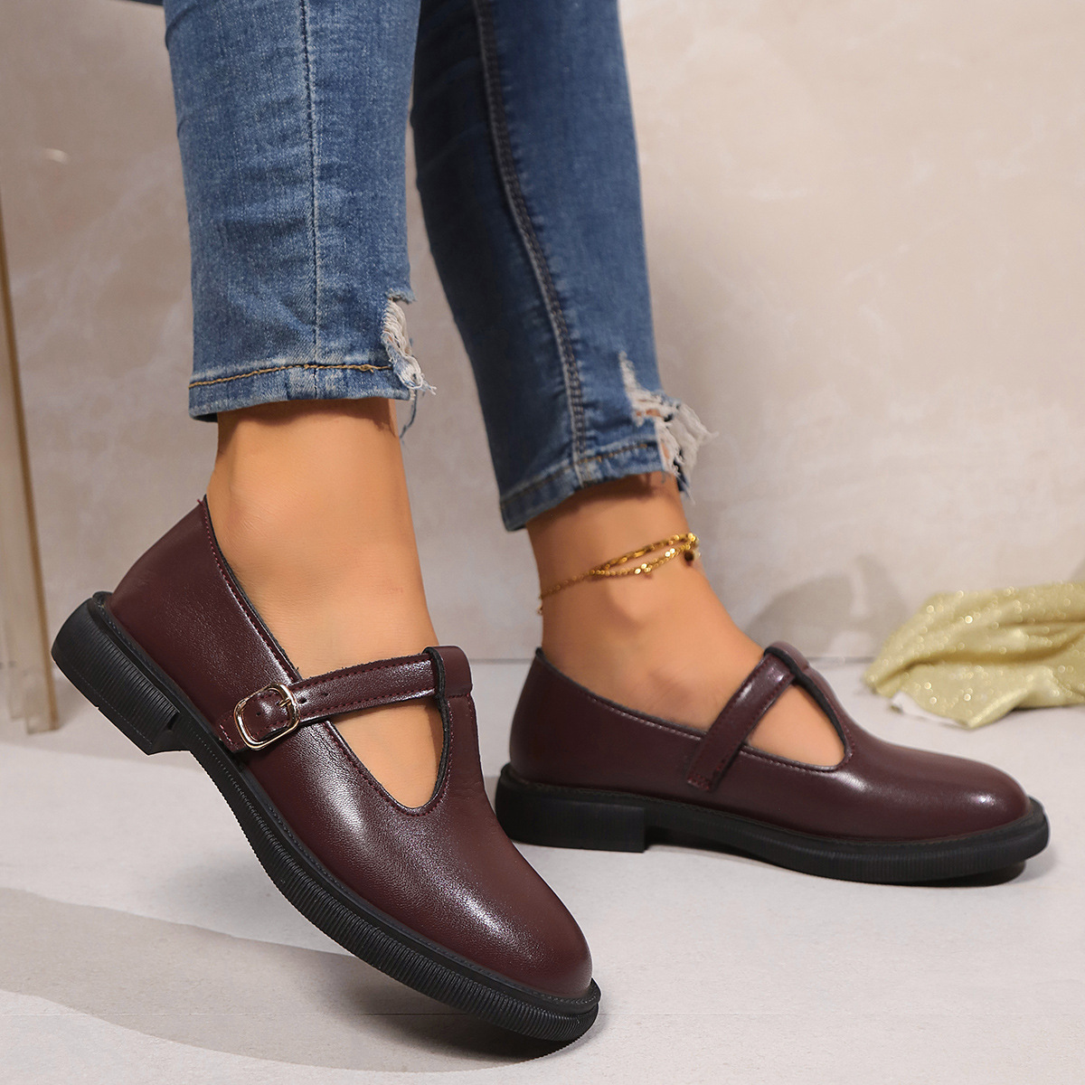 국경 간 벨트 버클 신발 대외 무역 2025 레트로 라운드 헤드 새로운 패션 영국 스타일 작은 가죽 신발 플랫 힐 여성 신발스토어 가기