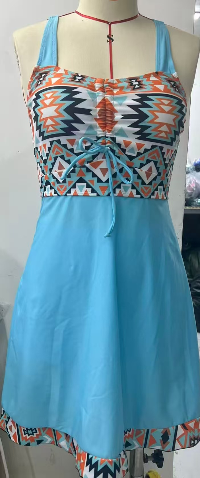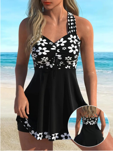 2025 유럽과 미국 국경 대외 무역 아마존 트렌드 프린트 넥 서스펜더 섹시한 비키니 스플릿 레이스 온천스토어 가기