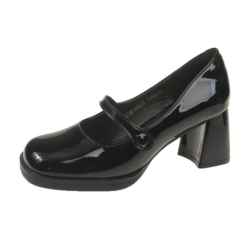 2025 여름 레트로 메리제인 통굽 여성화 라운드 토 얕은 입구 PU 신발 캐주얼 통기성 다용도 경량 스타일