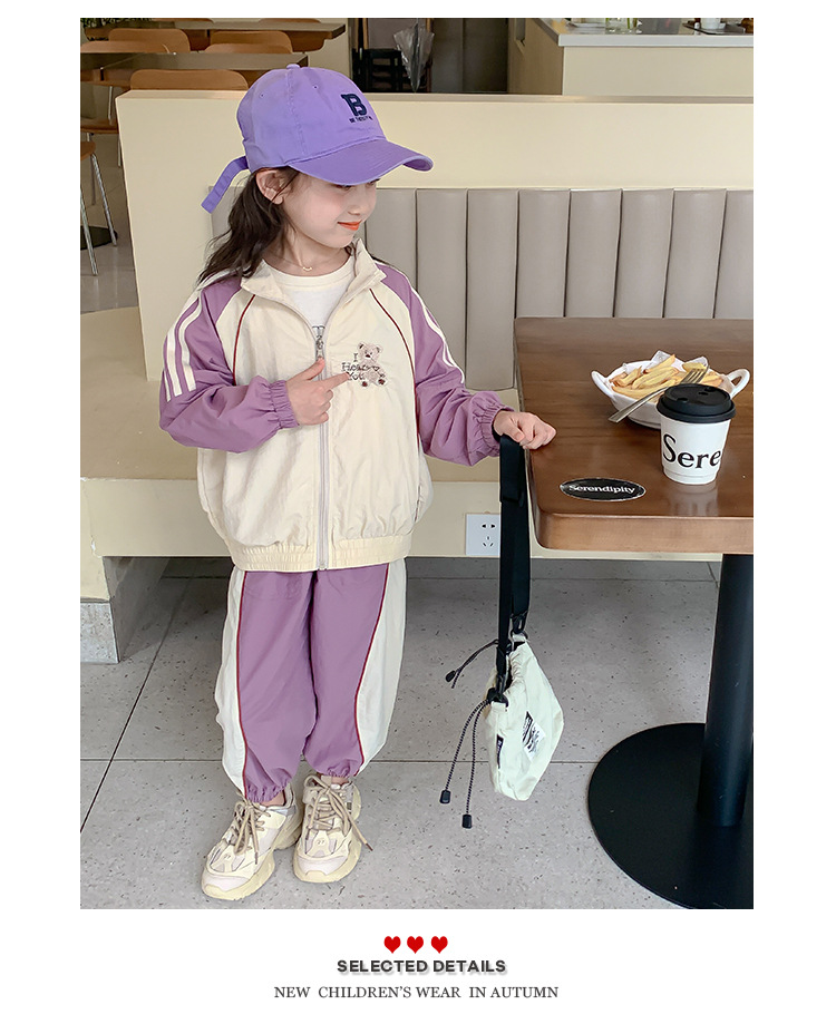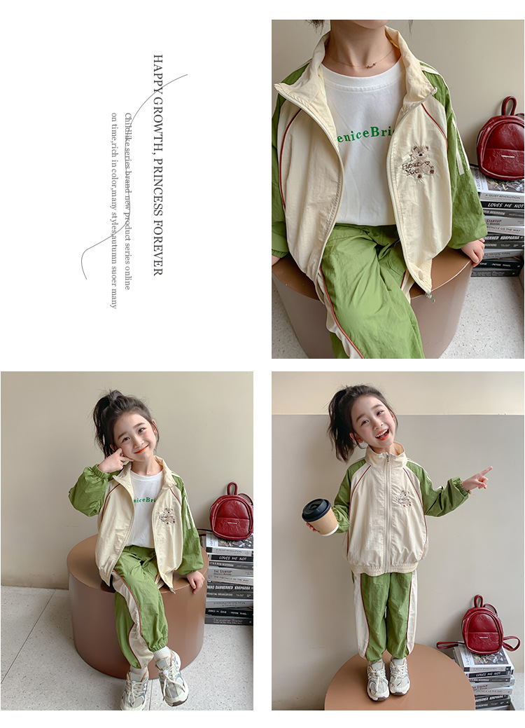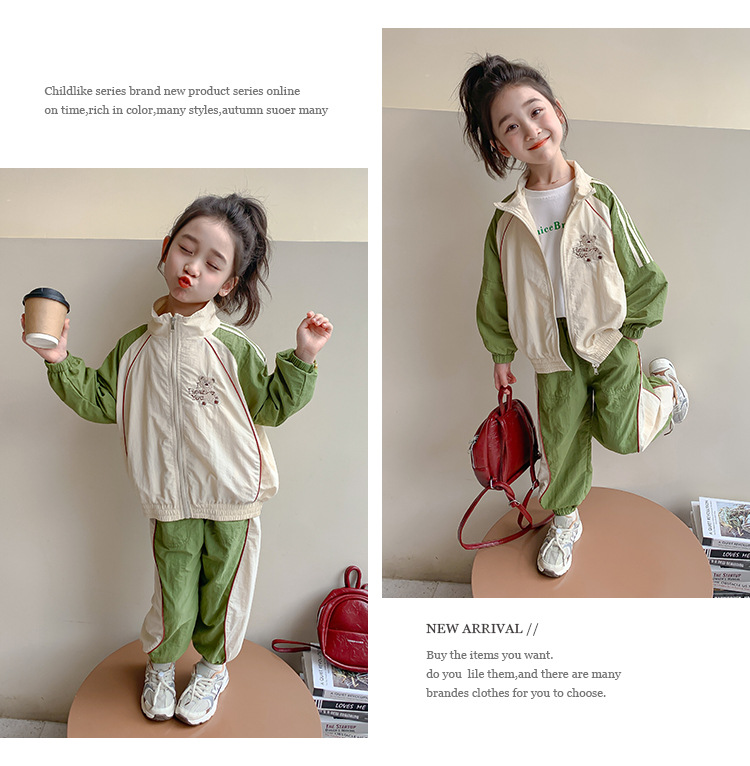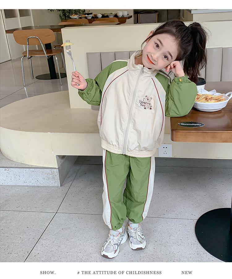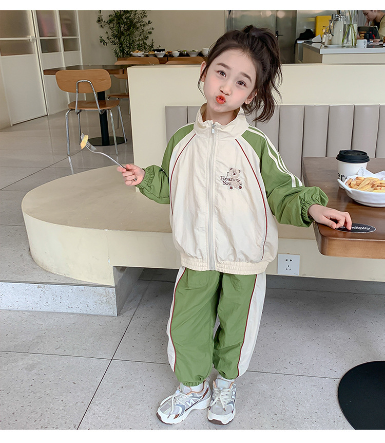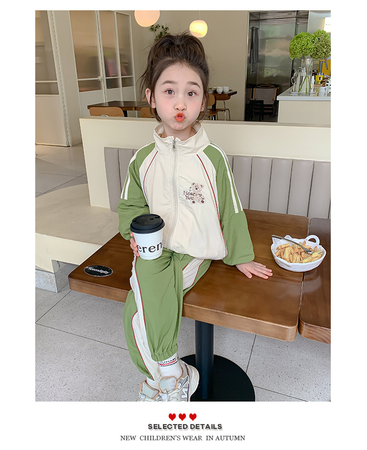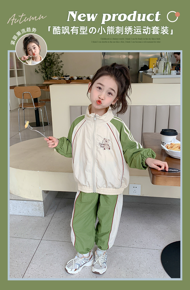 소녀 곰 자수 컬러 매칭 러시 옷 세트 봄과 가을 2025 새로운 패션 소녀 유행 투피스 세트스토어 가기