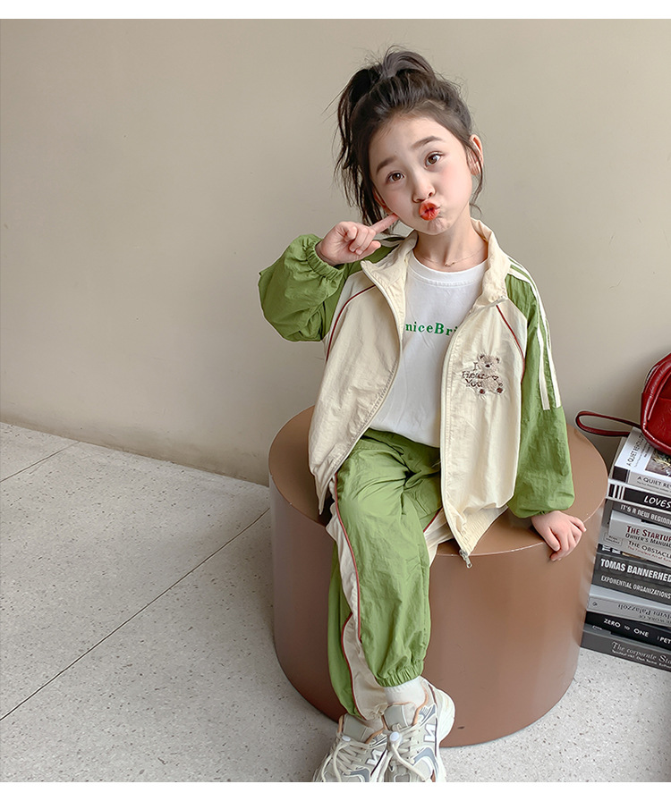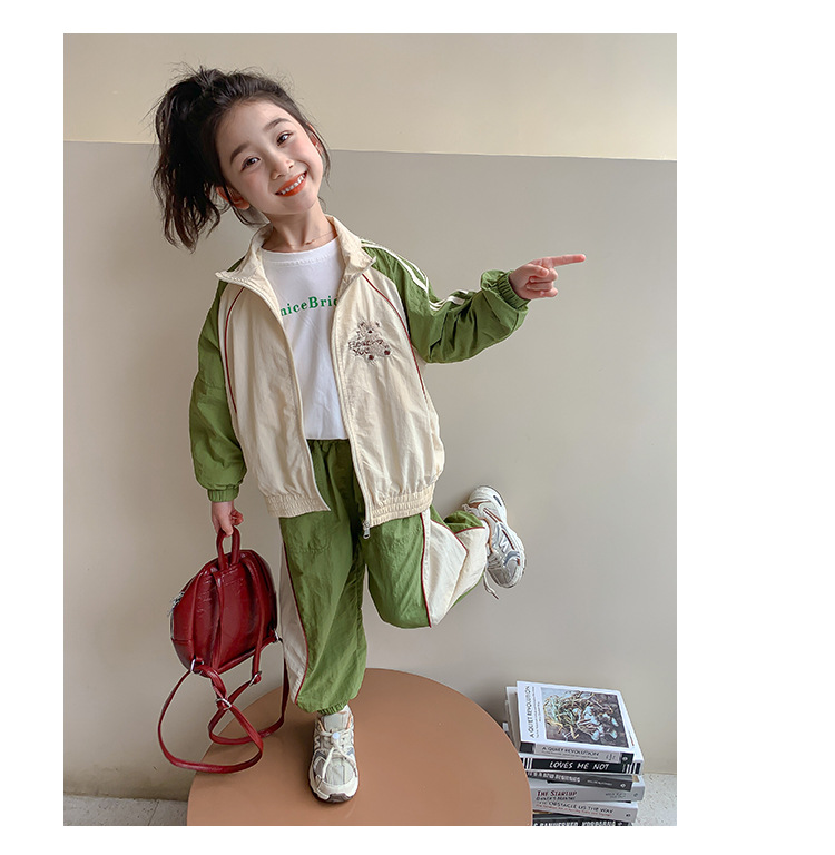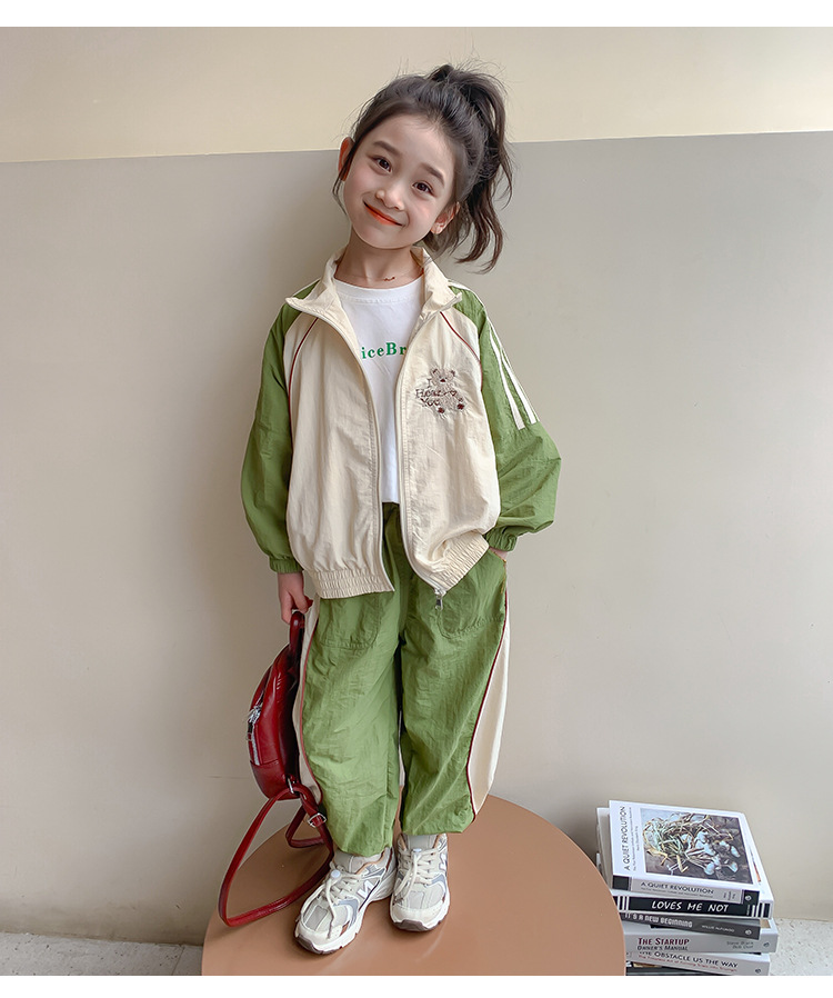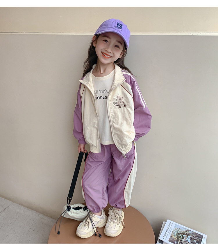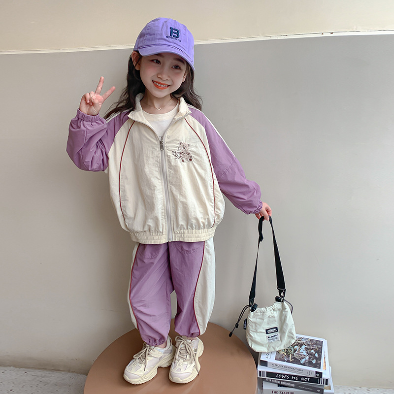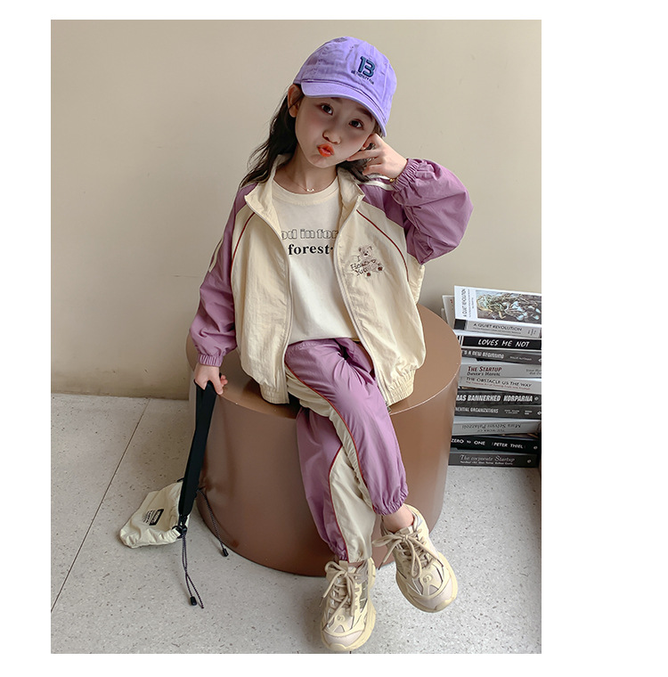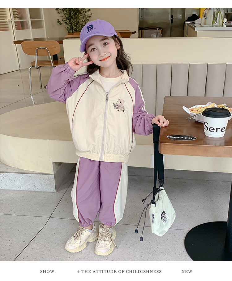 소녀 곰 자수 컬러 매칭 러시 옷 세트 봄과 가을 2025 새로운 패션 소녀 유행 투피스 세트스토어 가기