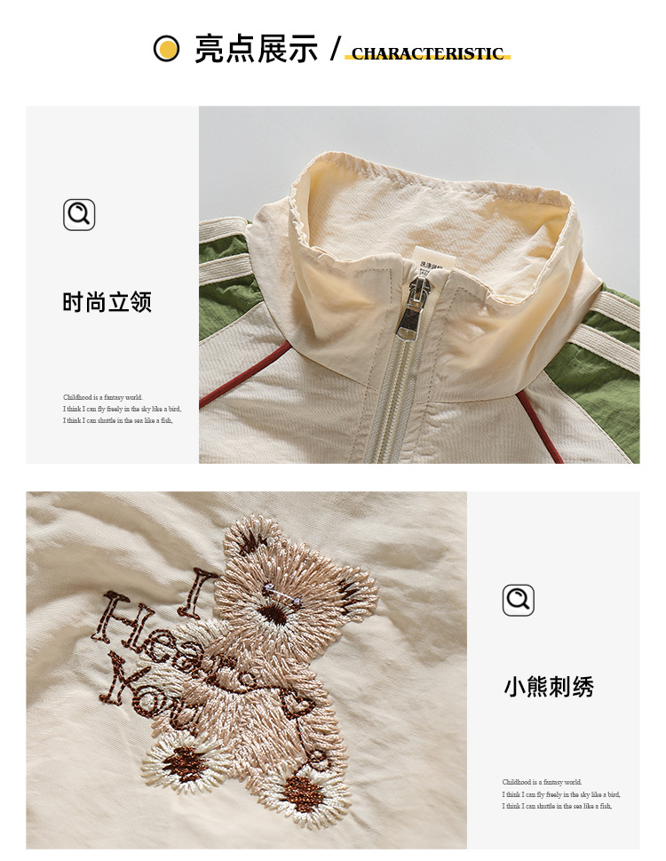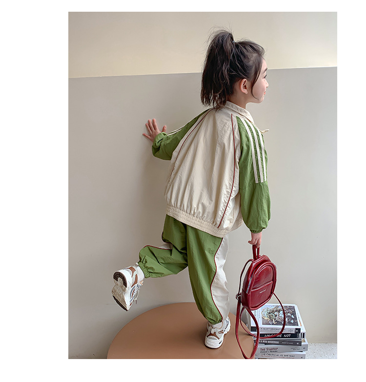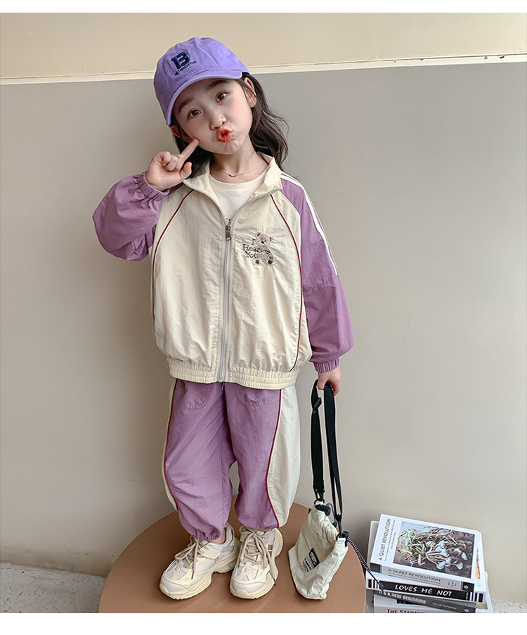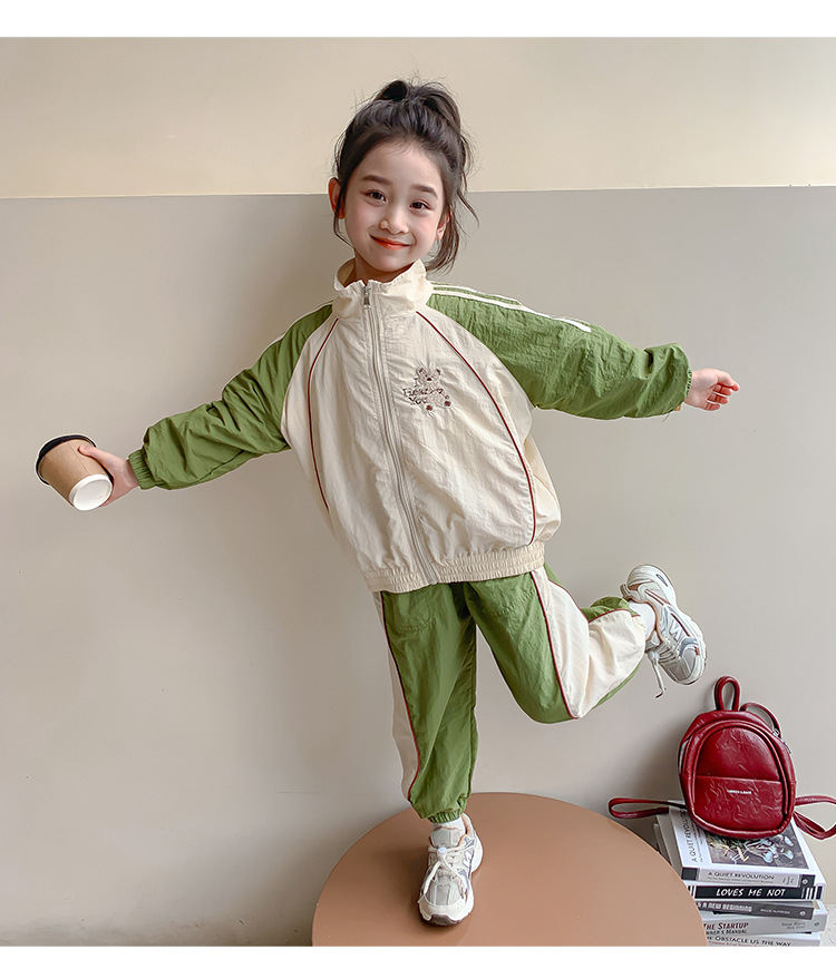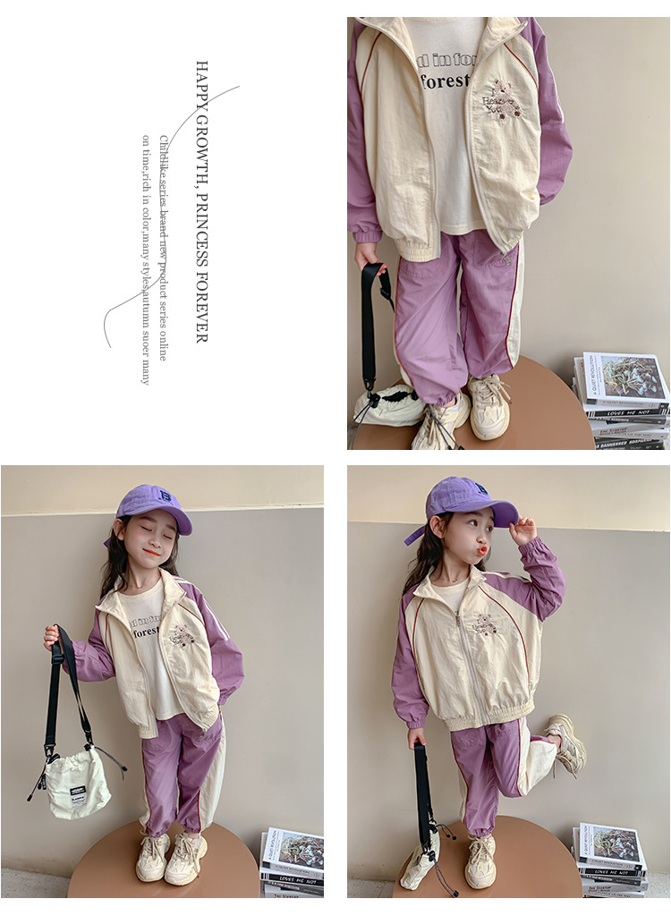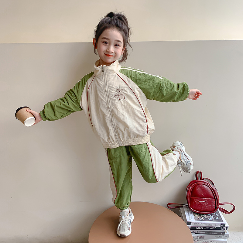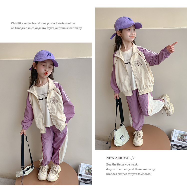 소녀 곰 자수 컬러 매칭 러시 옷 세트 봄과 가을 2025 새로운 패션 소녀 유행 투피스 세트스토어 가기