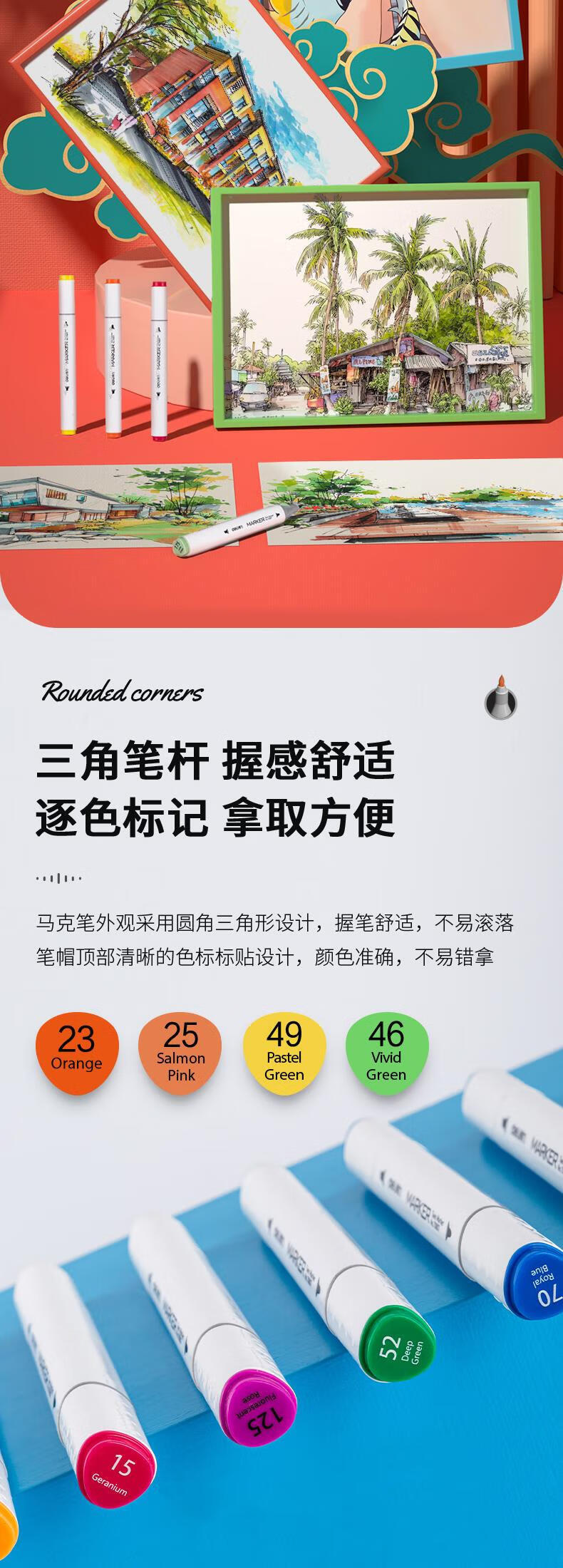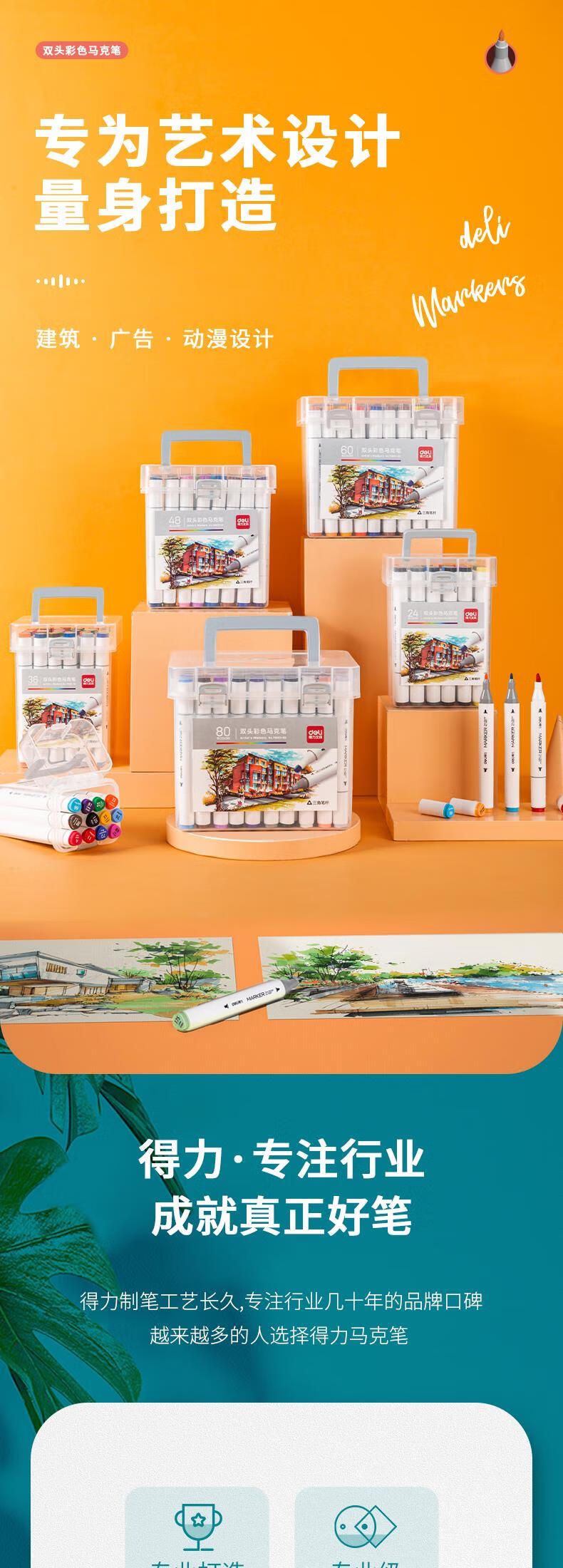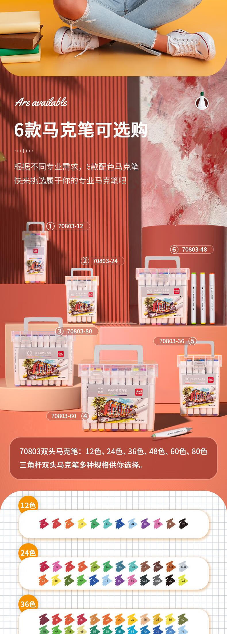 델리 70803 삼각형 바 더블 헤드 마커 12/24/36/48/60/80 컬러 어린이 학생 마커