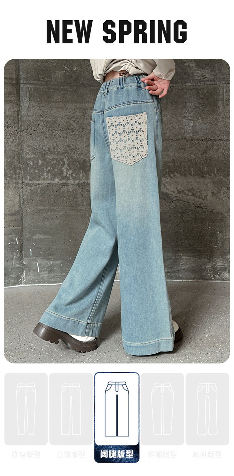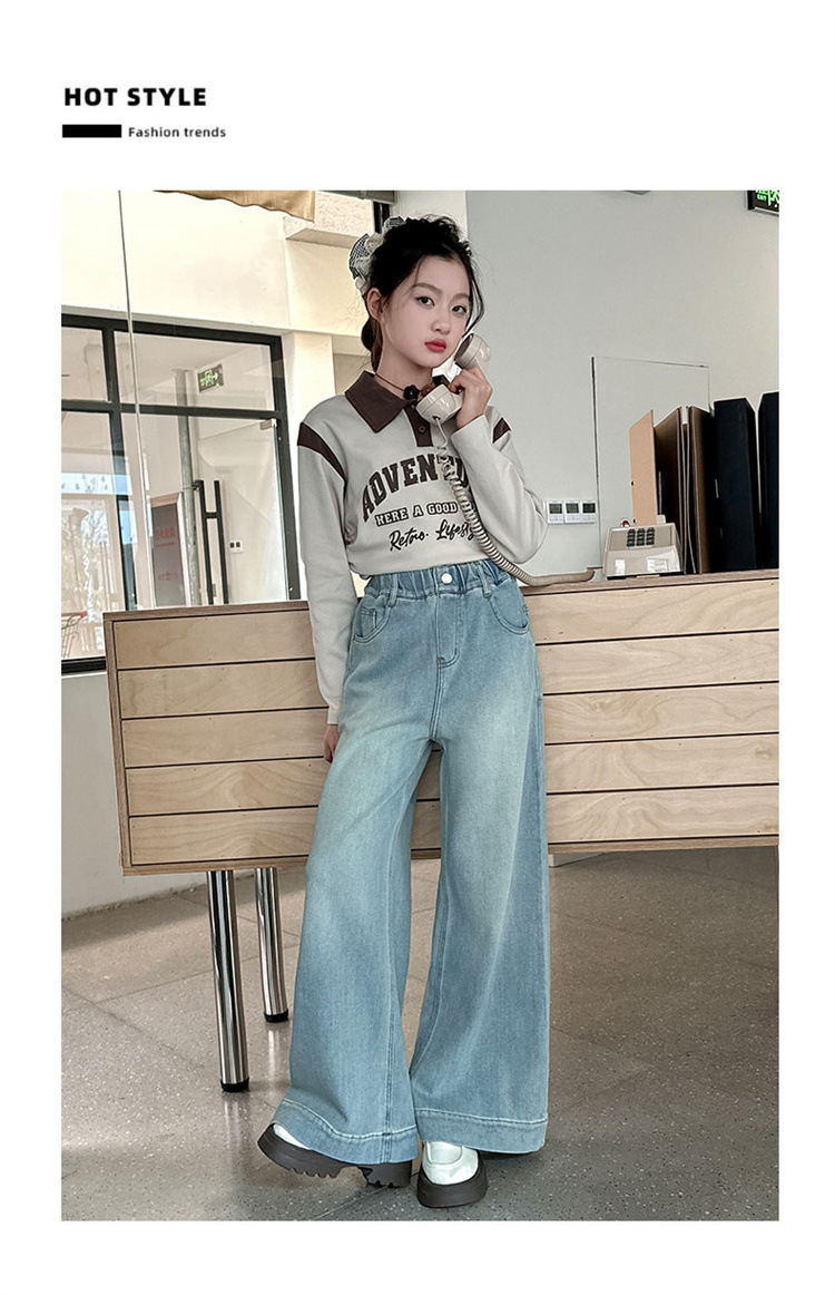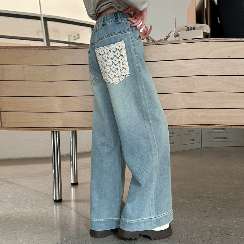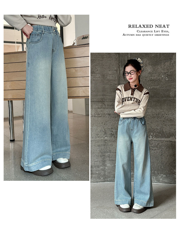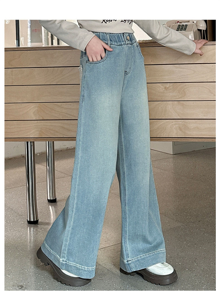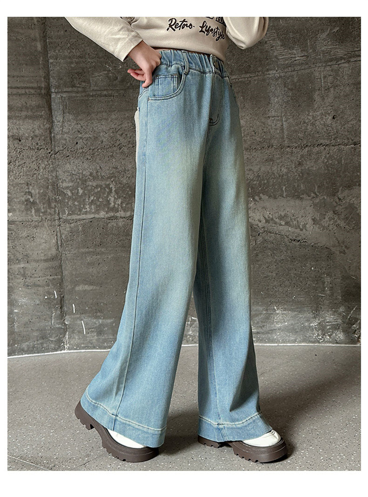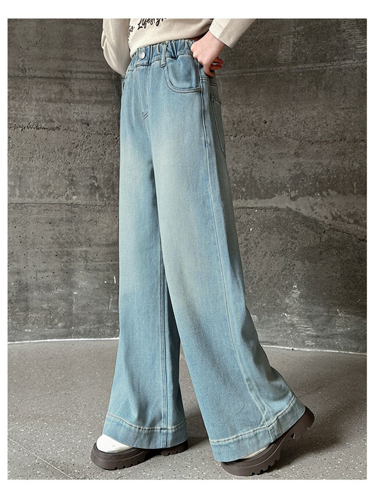 소녀 바지 봄 새로운 한국 스타일 어린이 서양식 올매치 걸스 와이드 레그 트렌디 한 스트레이트 청바지 Huzhou Zhili