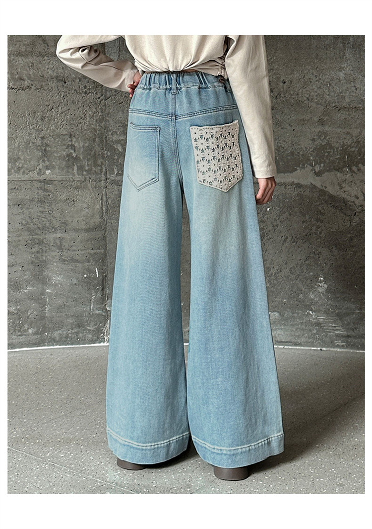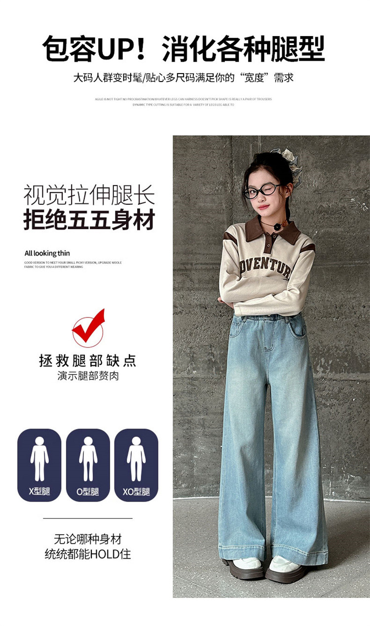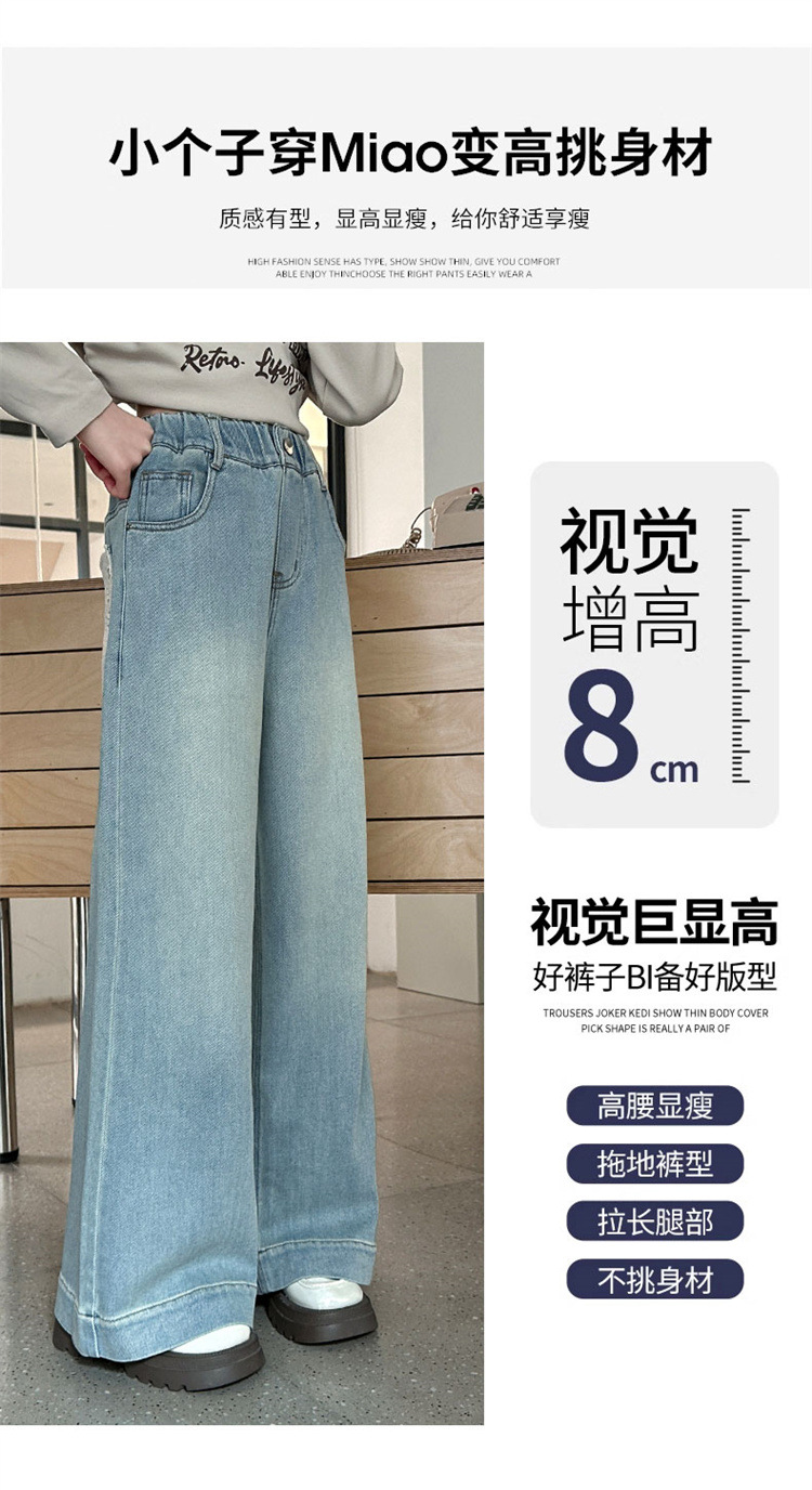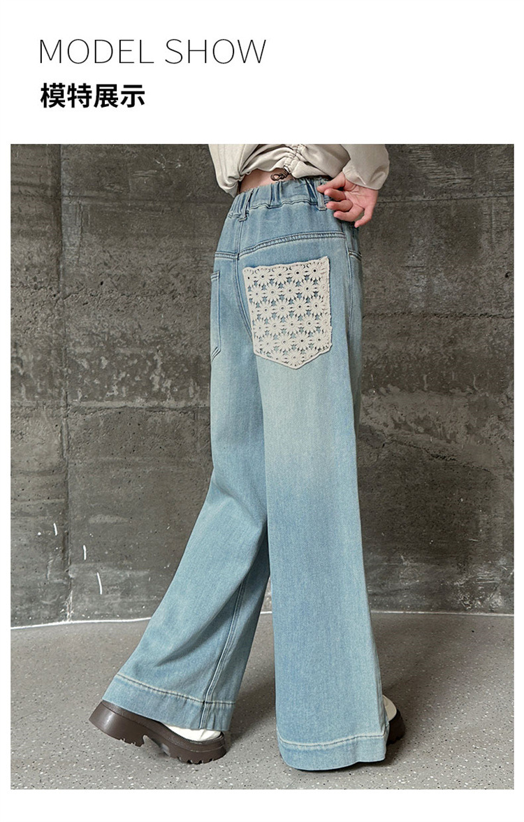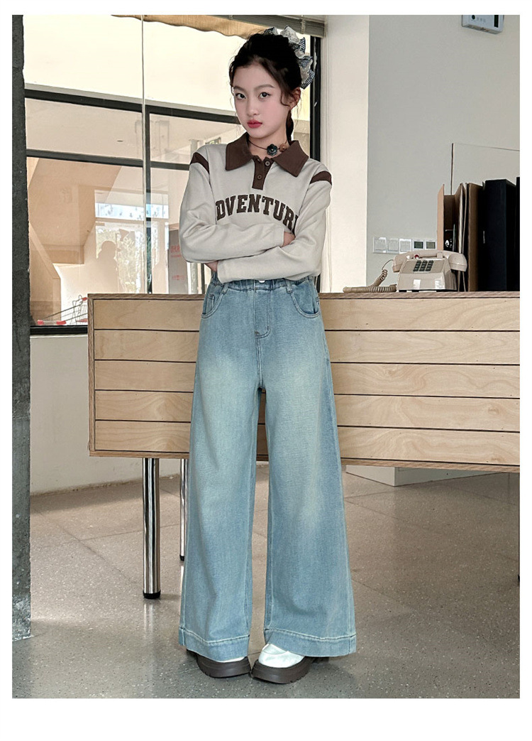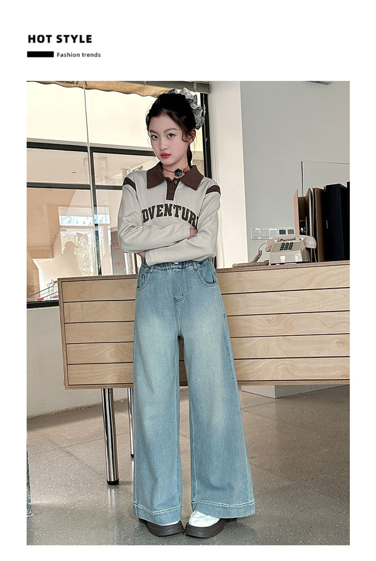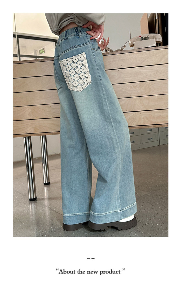 소녀 바지 봄 새로운 한국 스타일 어린이 서양식 올매치 걸스 와이드 레그 트렌디 한 스트레이트 청바지 Huzhou Zhili