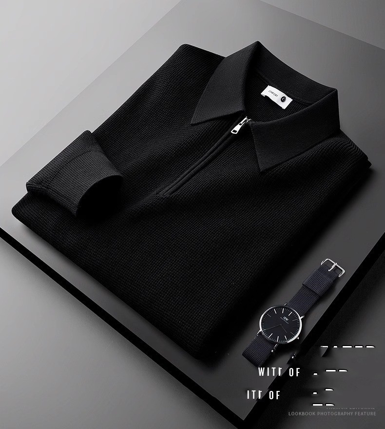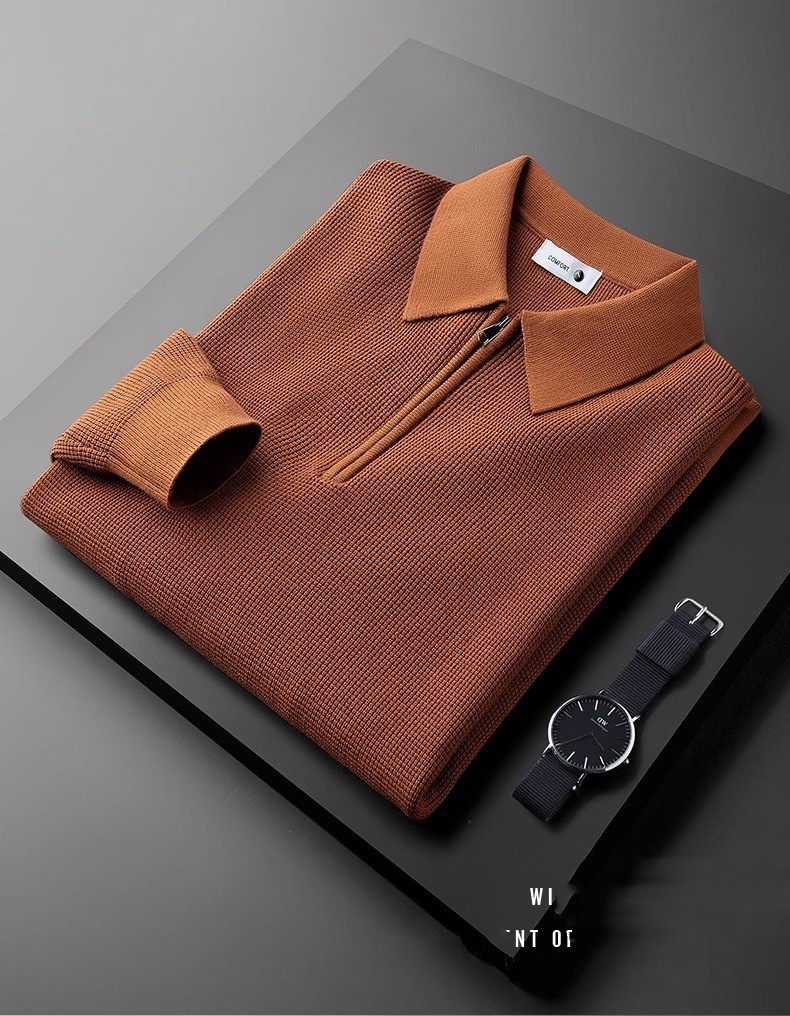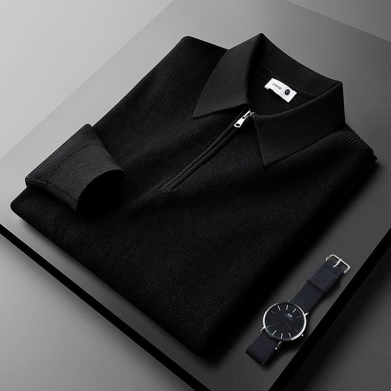 겨울 두꺼운 따뜻한 니트 와플 하프 지프 화이트 폴로 셔츠 남성용 긴 소매 스웨터 옷깃 스웨터스토어 가기