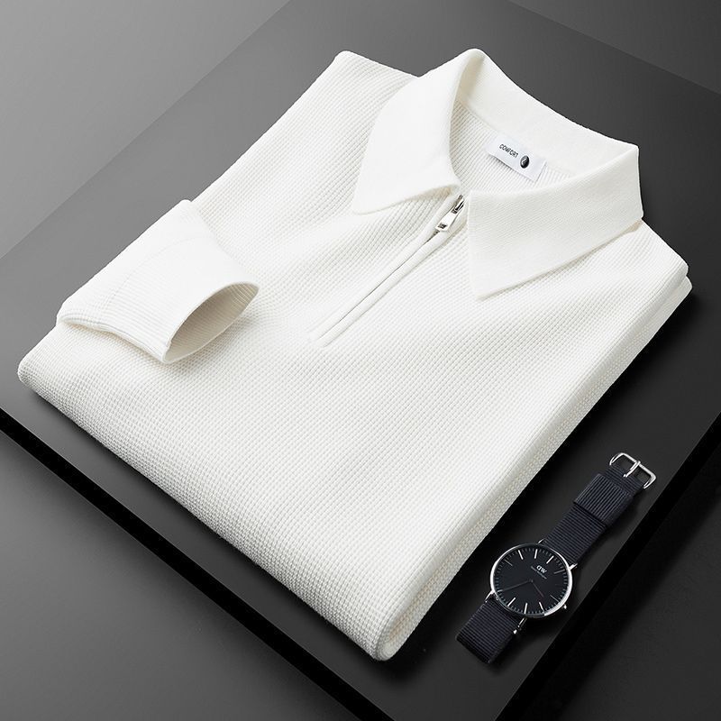 겨울 두꺼운 따뜻한 니트 와플 하프 지프 화이트 폴로 셔츠 남성용 긴 소매 스웨터 옷깃 스웨터