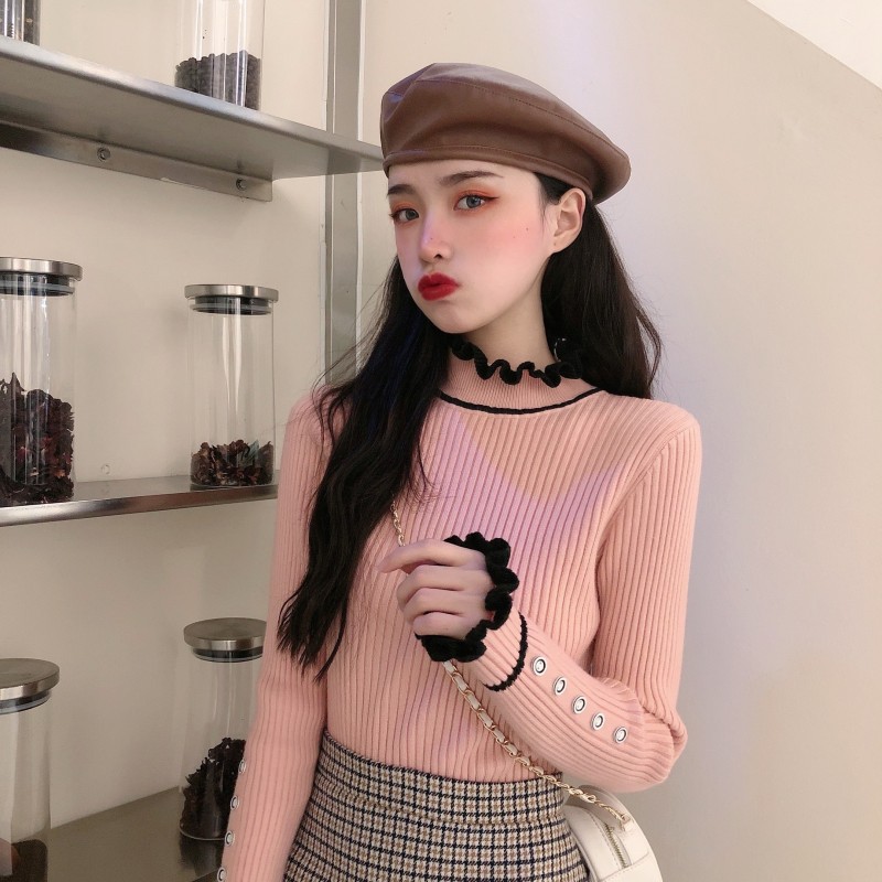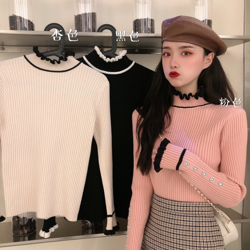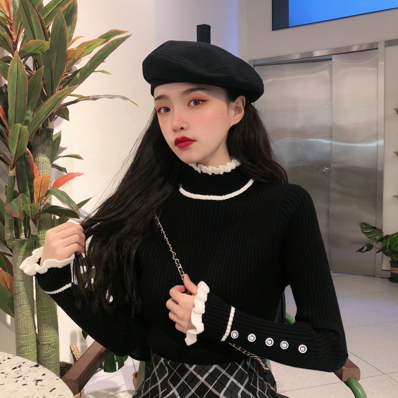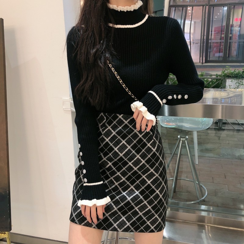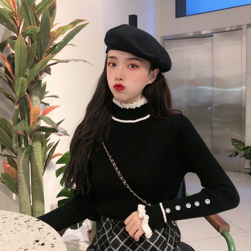 긴팔 탑 니트 블랙 짧은 새 여성의 2025 베이스 셔츠 이른 봄 스웨터 겨울 올 매치스토어 가기
