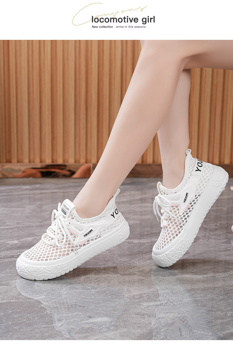 2025 여름 비행 짠 흰색 신발 새로운 한국 스타일 Ins 학생 메쉬 통기성 캐주얼 러닝 보드 신발 YDH432