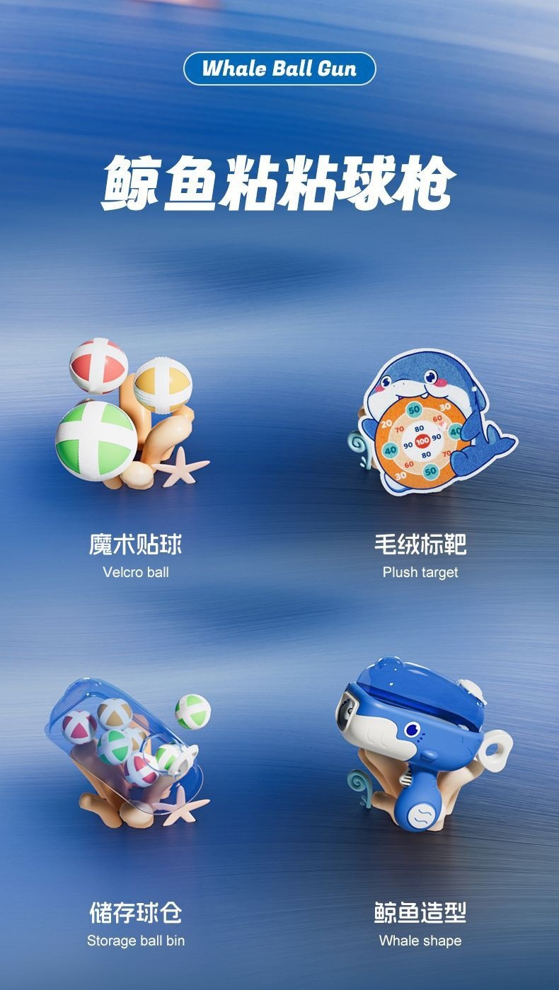 新款鲸鱼球球枪弹射粘粘球儿童宝宝少儿男孩女孩3岁6玩具