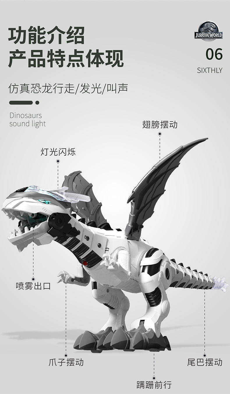 대형 전기 스프레이 공룡 장난감 걷는 소리 시뮬레이션 공룡 모델 소년 3-6 세 5 장난감