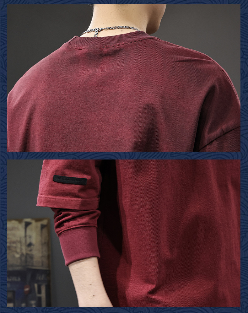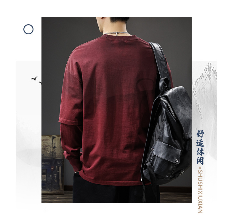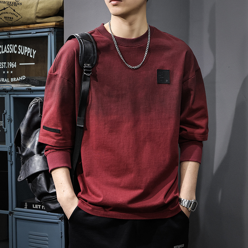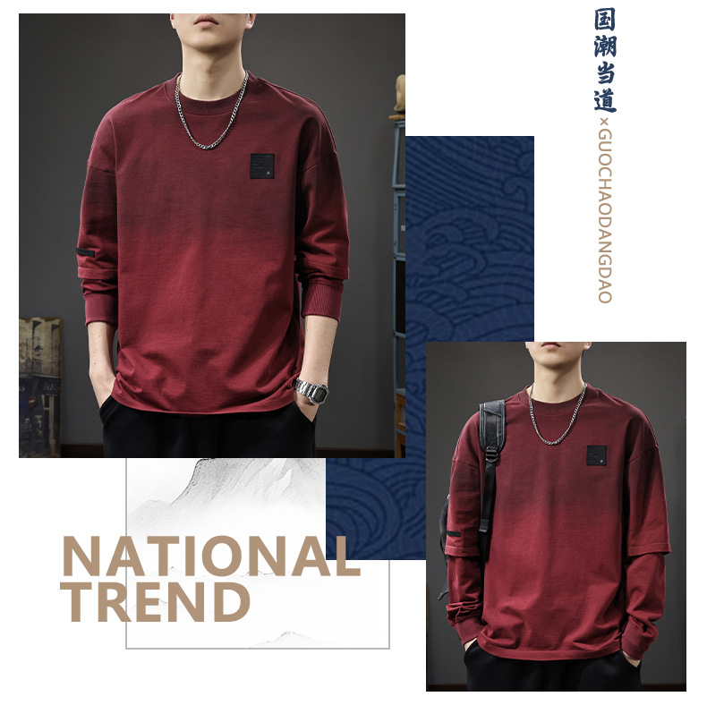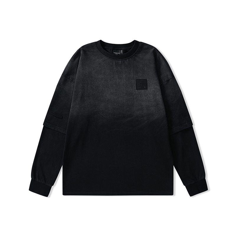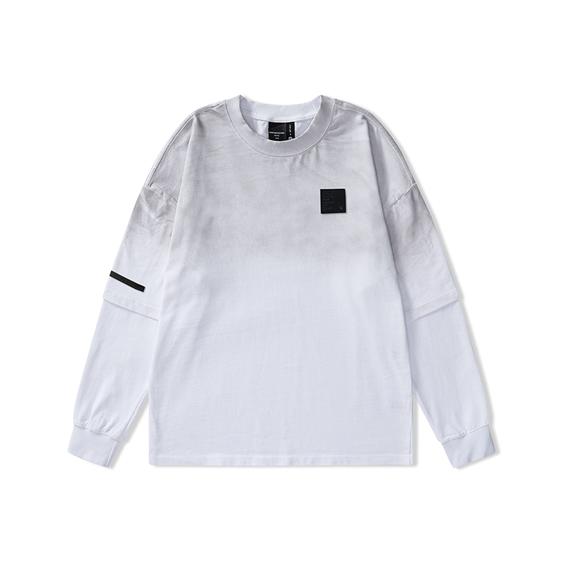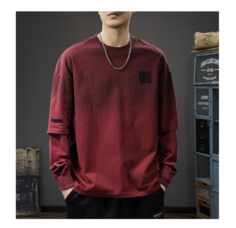 2025 스프링 인 그라디언트 세척 남성 긴팔 티셔츠 미국 패션 브랜드 가짜 투피스 탑 느슨한 플러스 사이즈 티셔츠스토어 가기