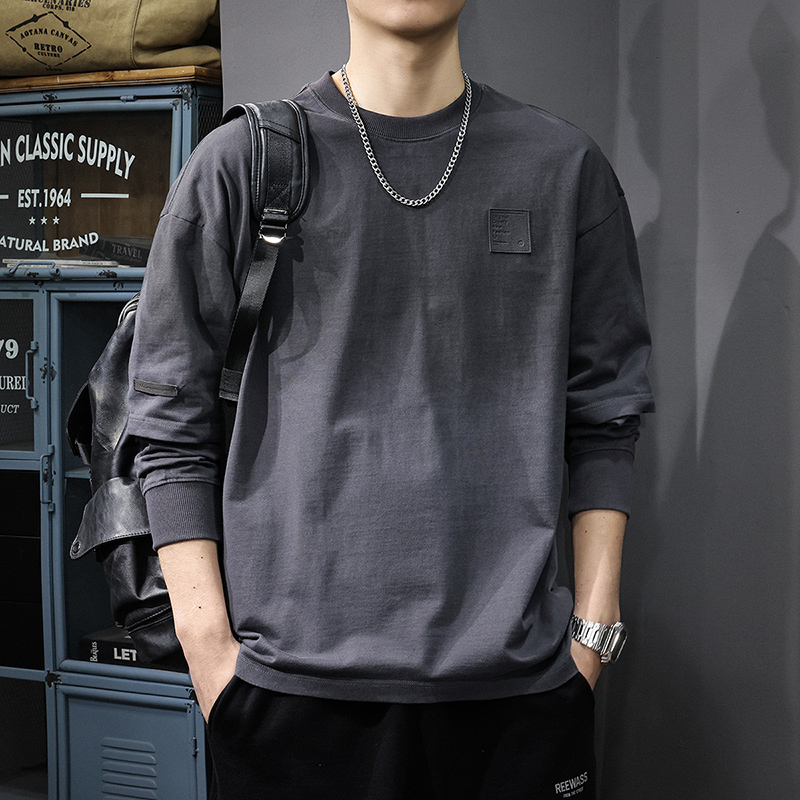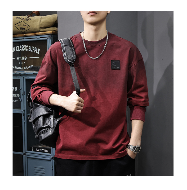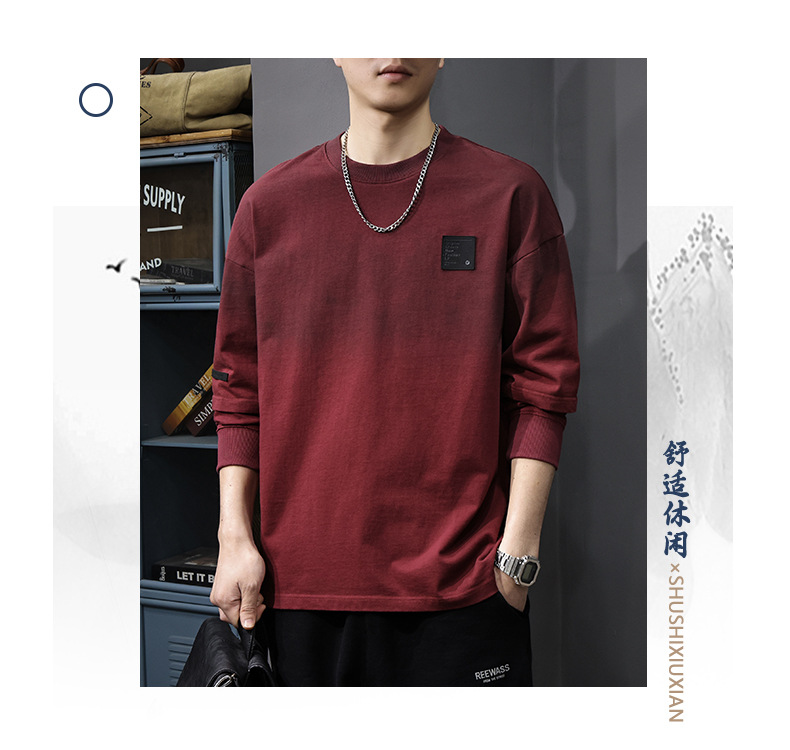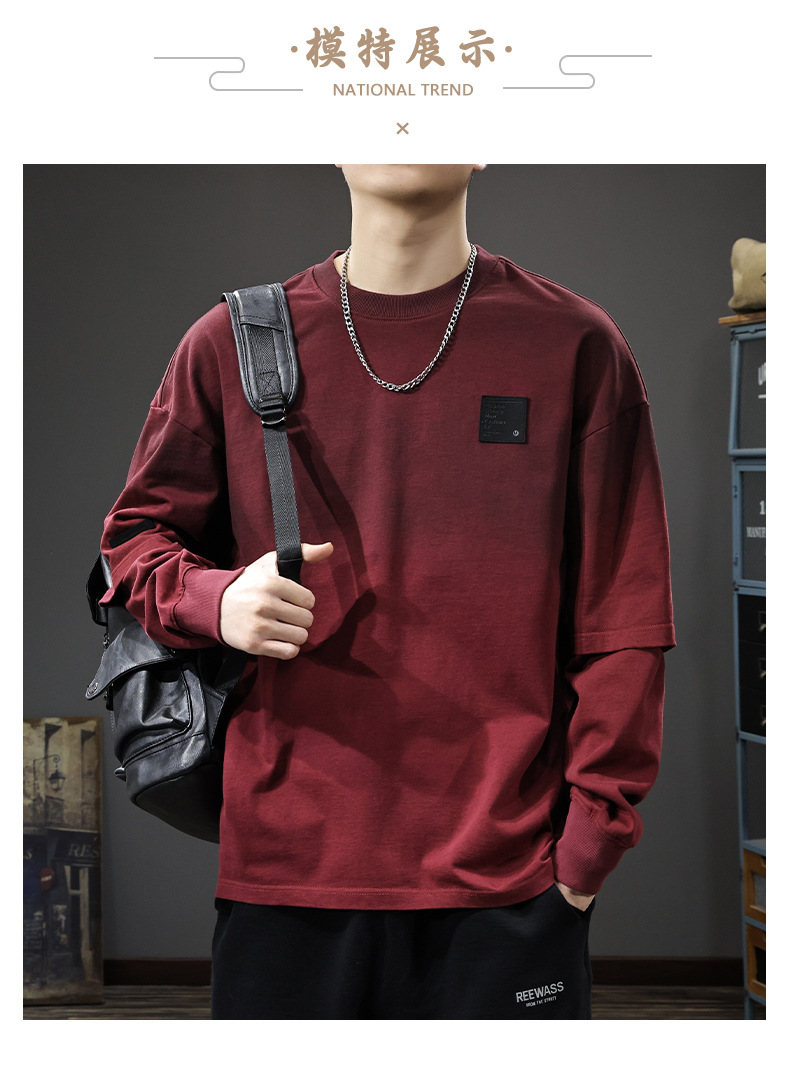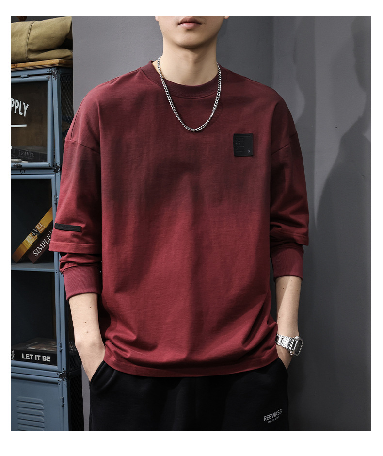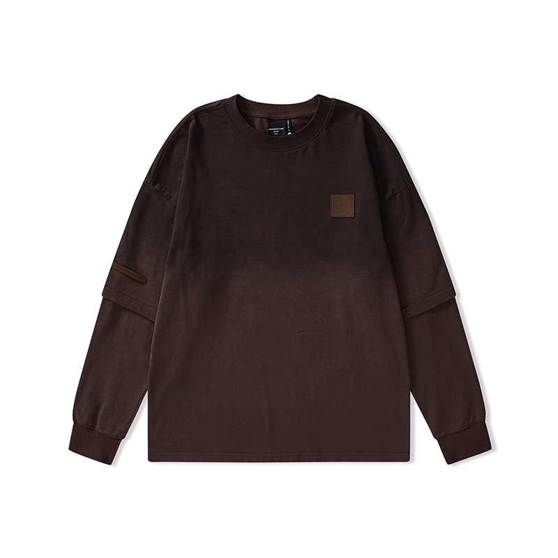 2025 스프링 인 그라디언트 세척 남성 긴팔 티셔츠 미국 패션 브랜드 가짜 투피스 탑 느슨한 플러스 사이즈 티셔츠스토어 가기