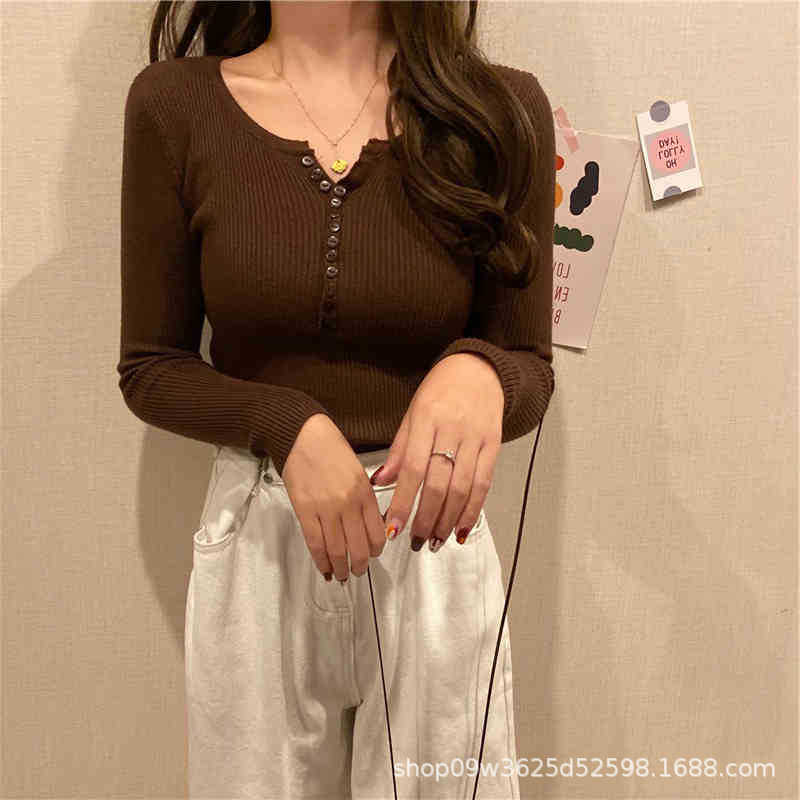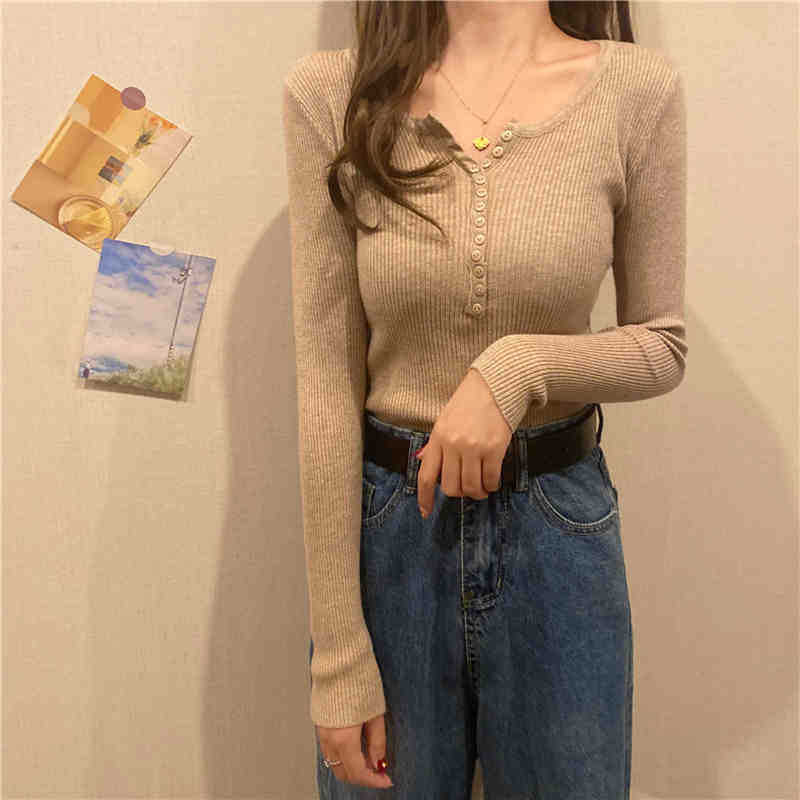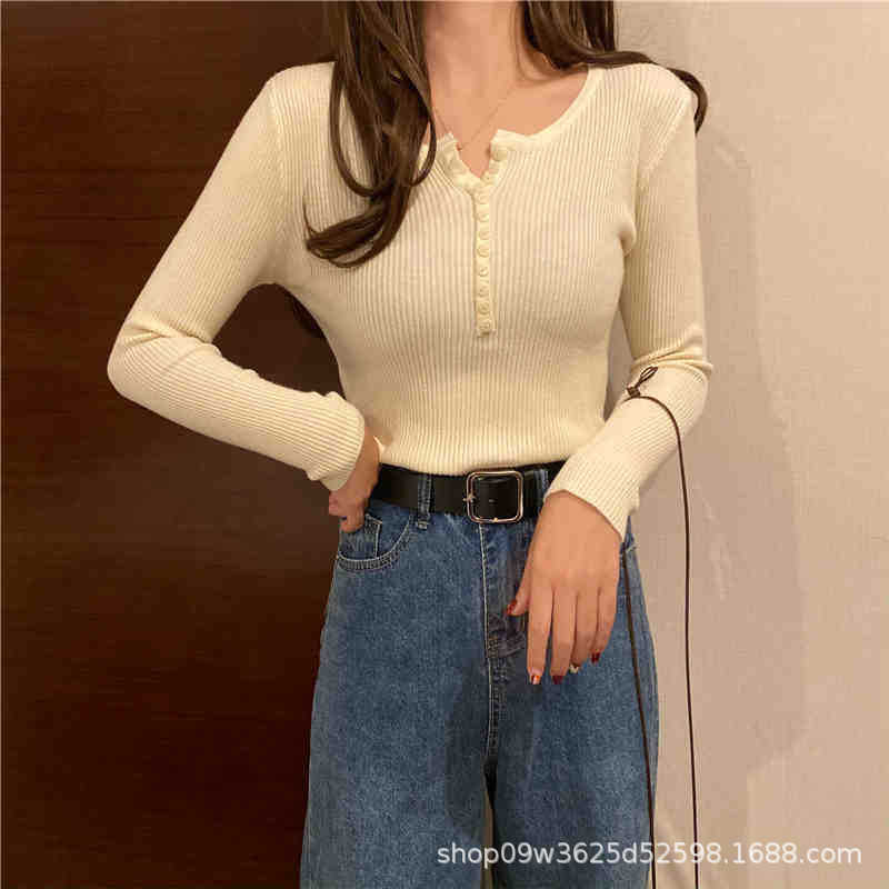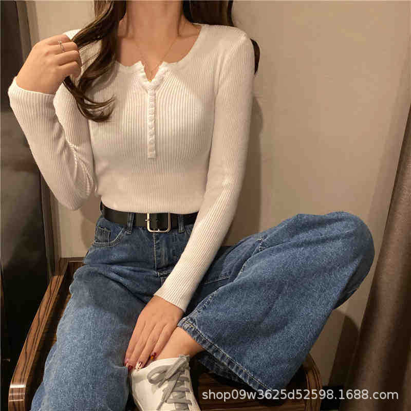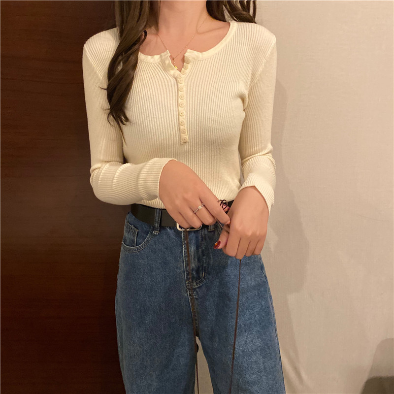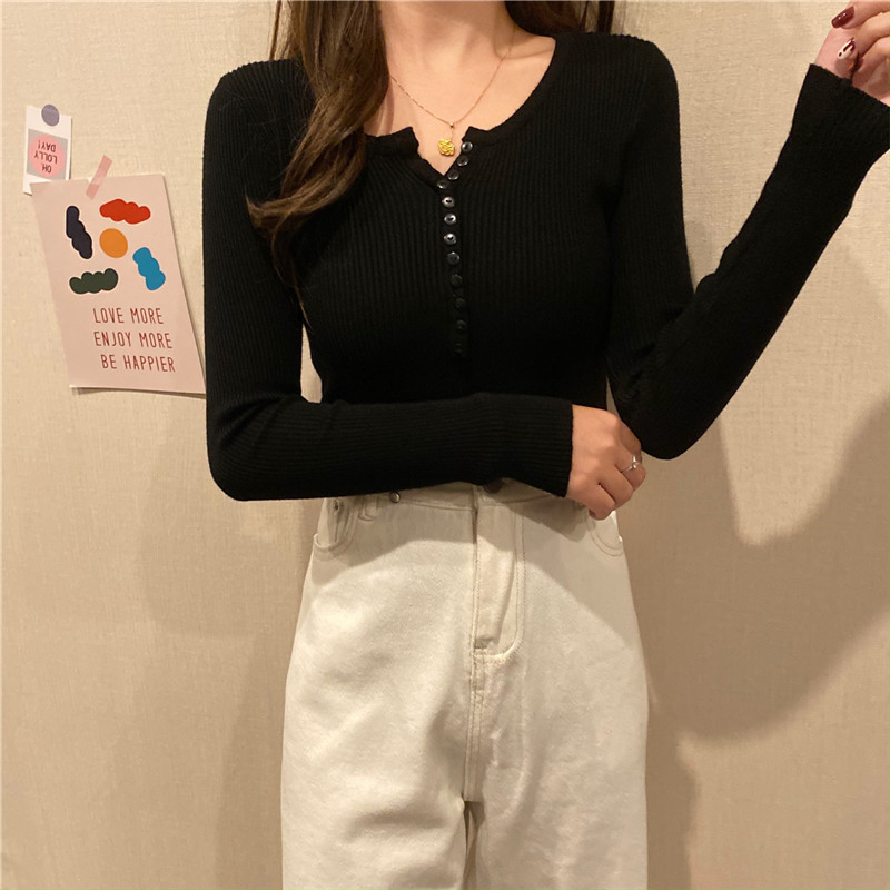 세련된 로우 넥 베이스 셔츠 여성용 봄웨어 외래식 니트 셔츠, 콜라본 타이트 스웨터 톱 11 색상 착용
