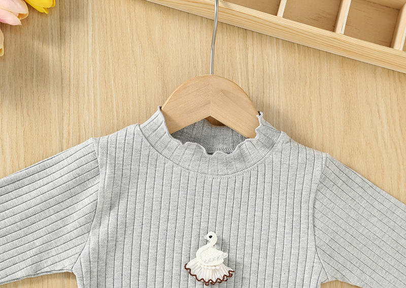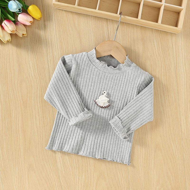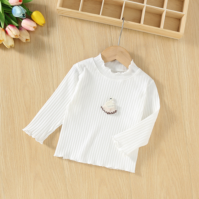 소녀 아기의 긴팔 티셔츠 봄과 가을 어린이 서양식 만화 자수 레이스 탑 가을 올매치 베이스 셔츠