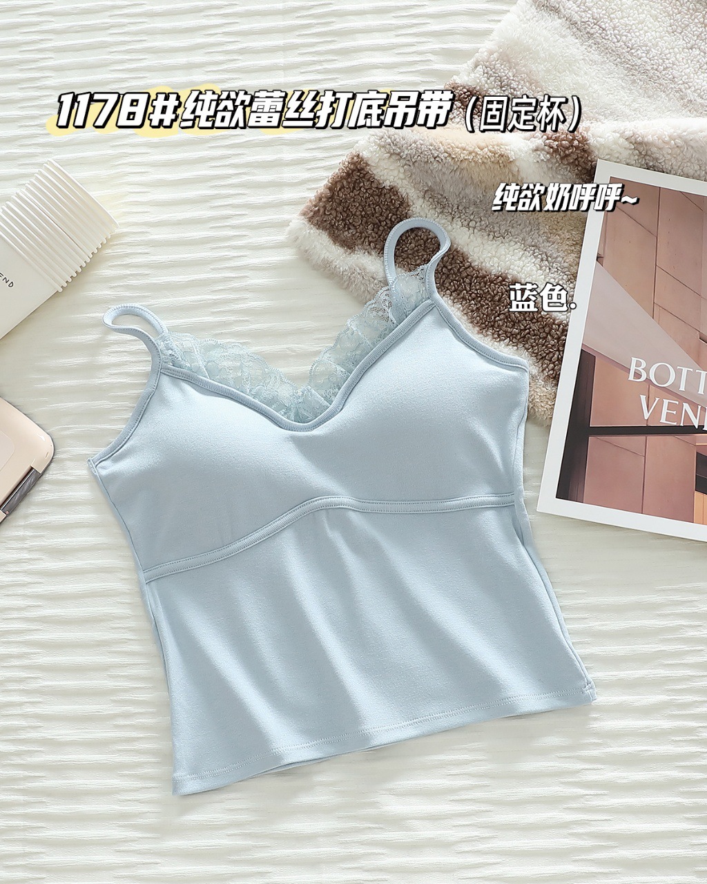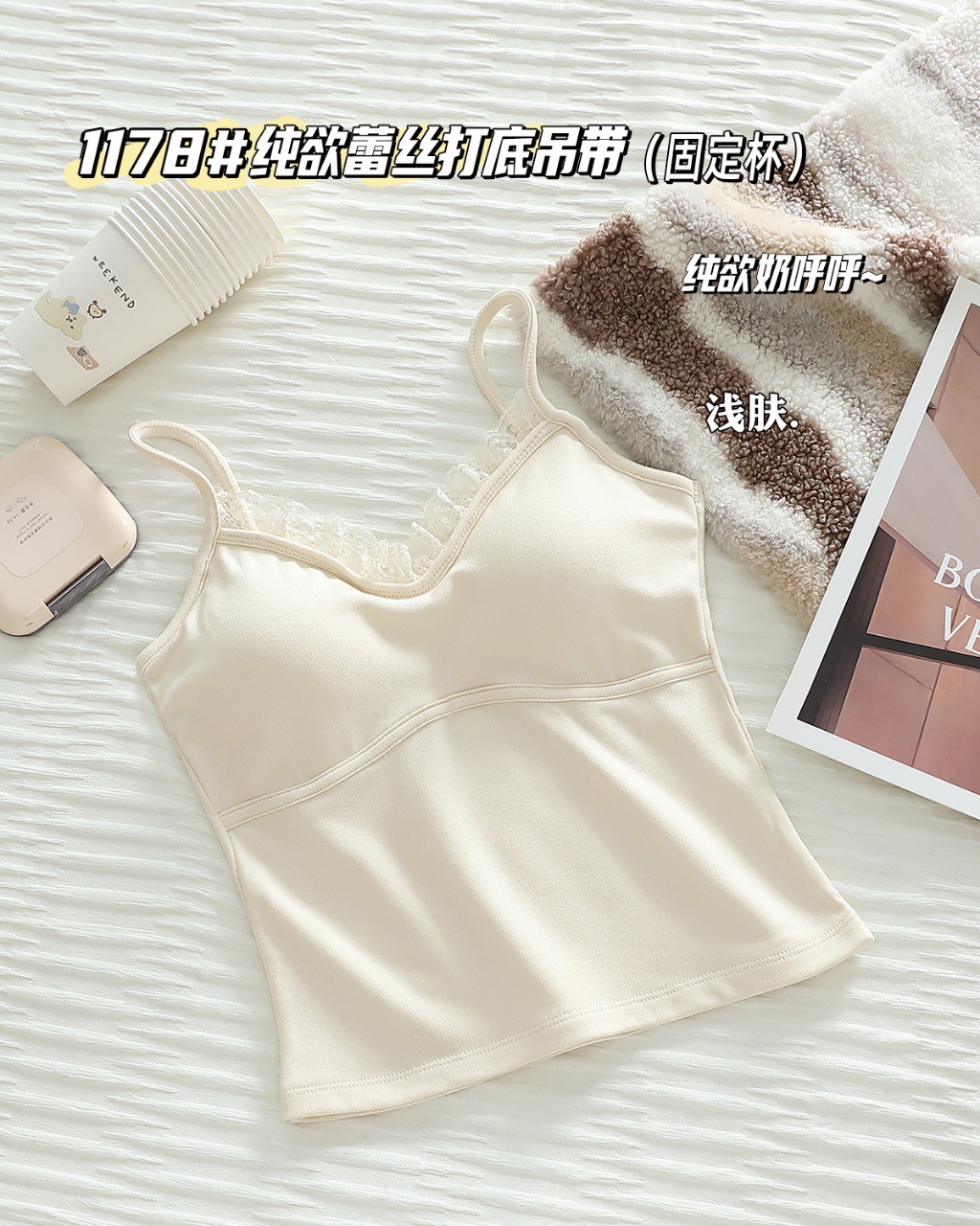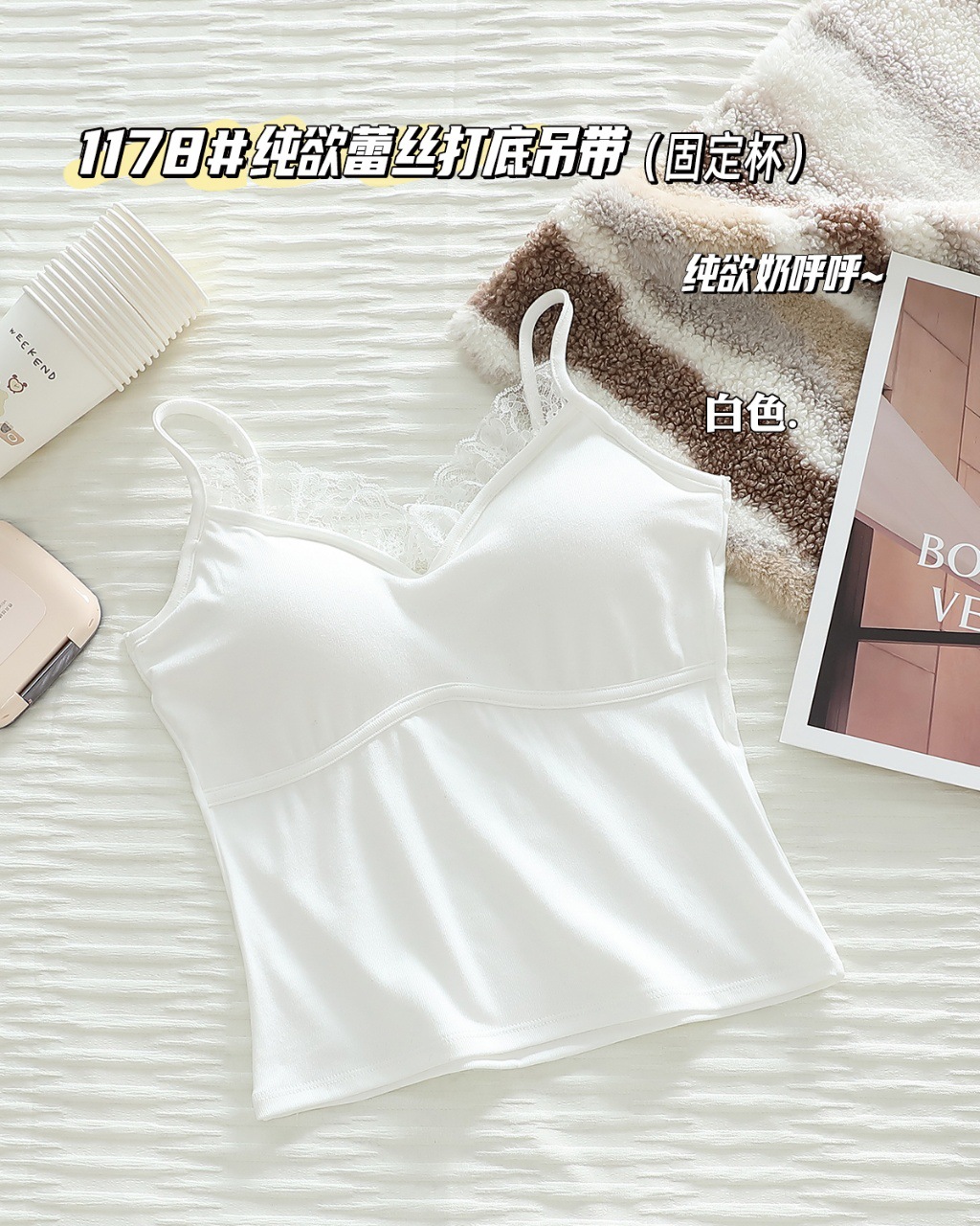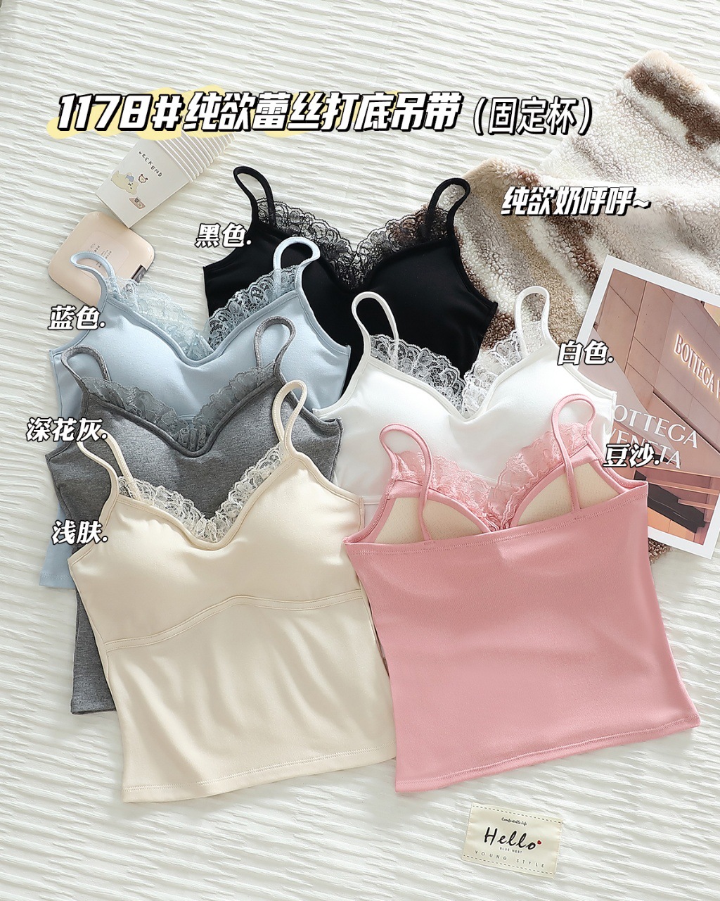 1178 # 봄 새로운 순수한 부드러운 스타일 레이스베이스 카미솔 여성용 내부 원피스 고정 가슴 패드