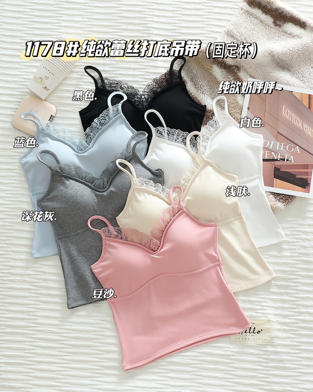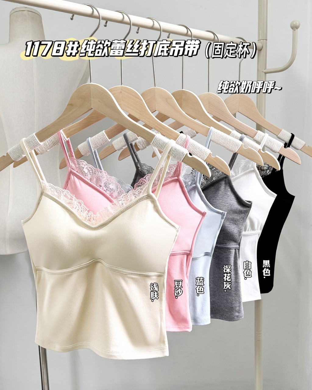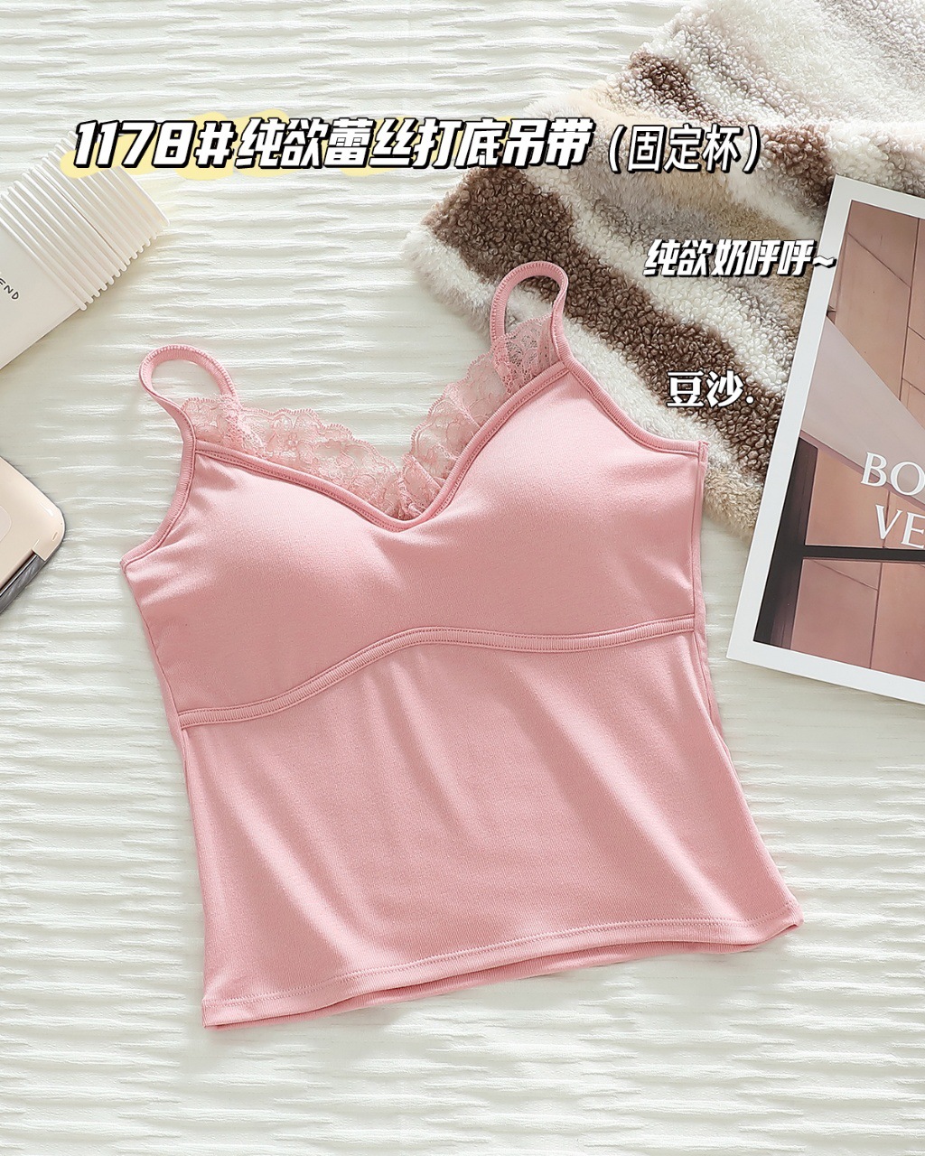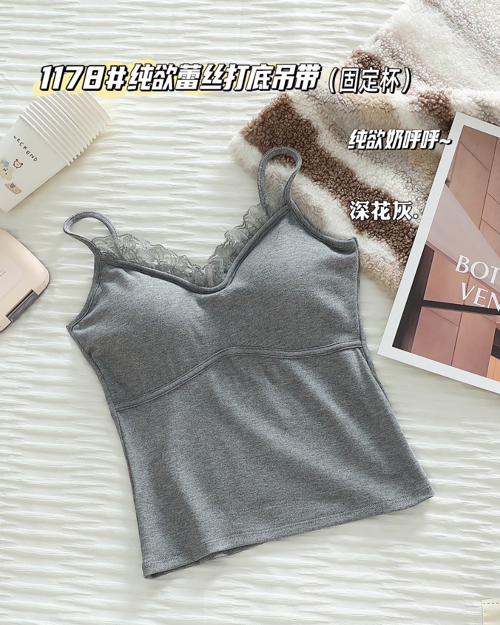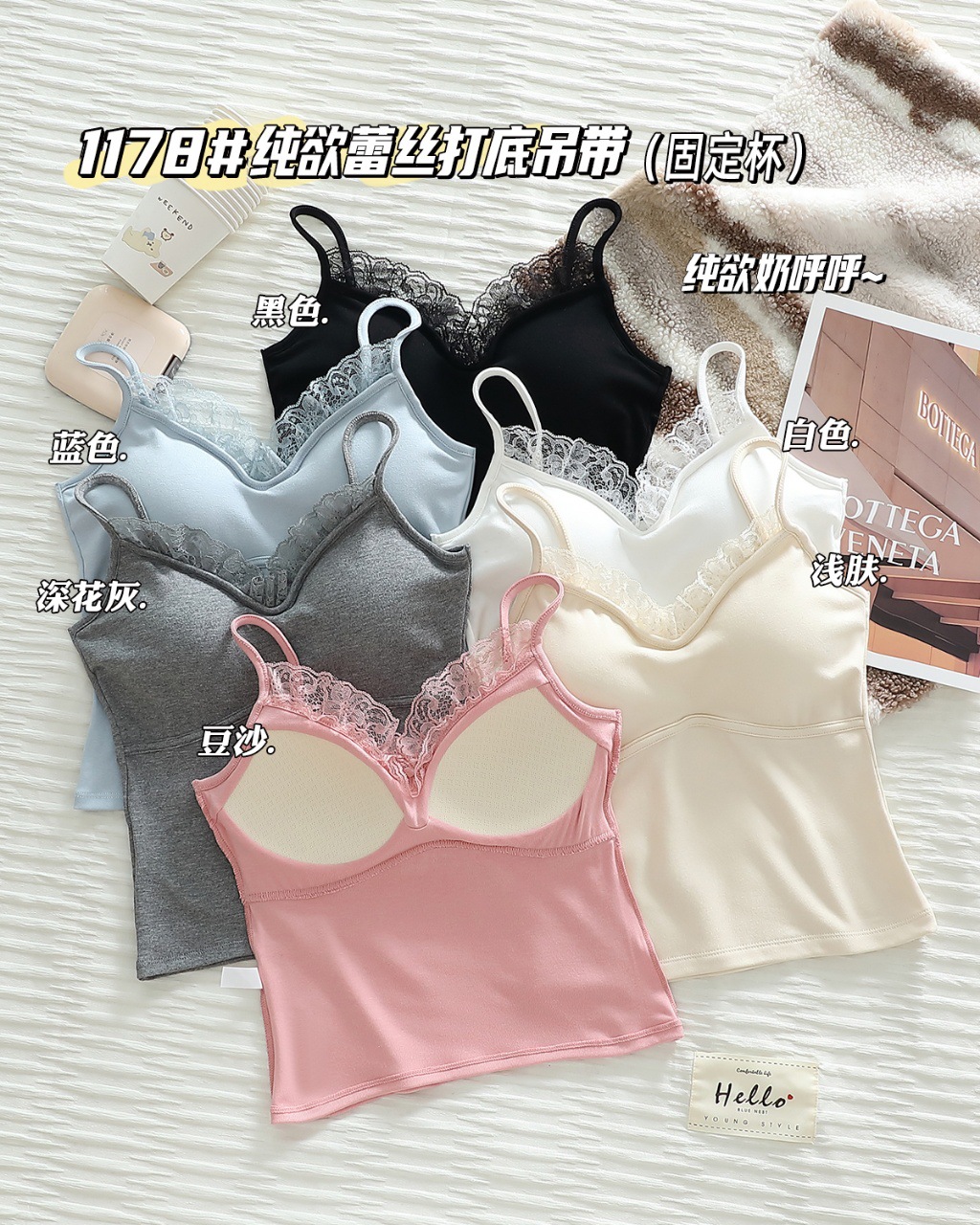 1178 # 봄 새로운 순수한 부드러운 스타일 레이스베이스 카미솔 여성용 내부 원피스 고정 가슴 패드