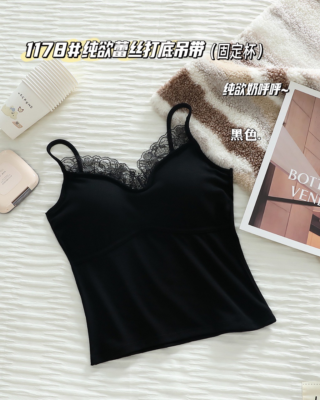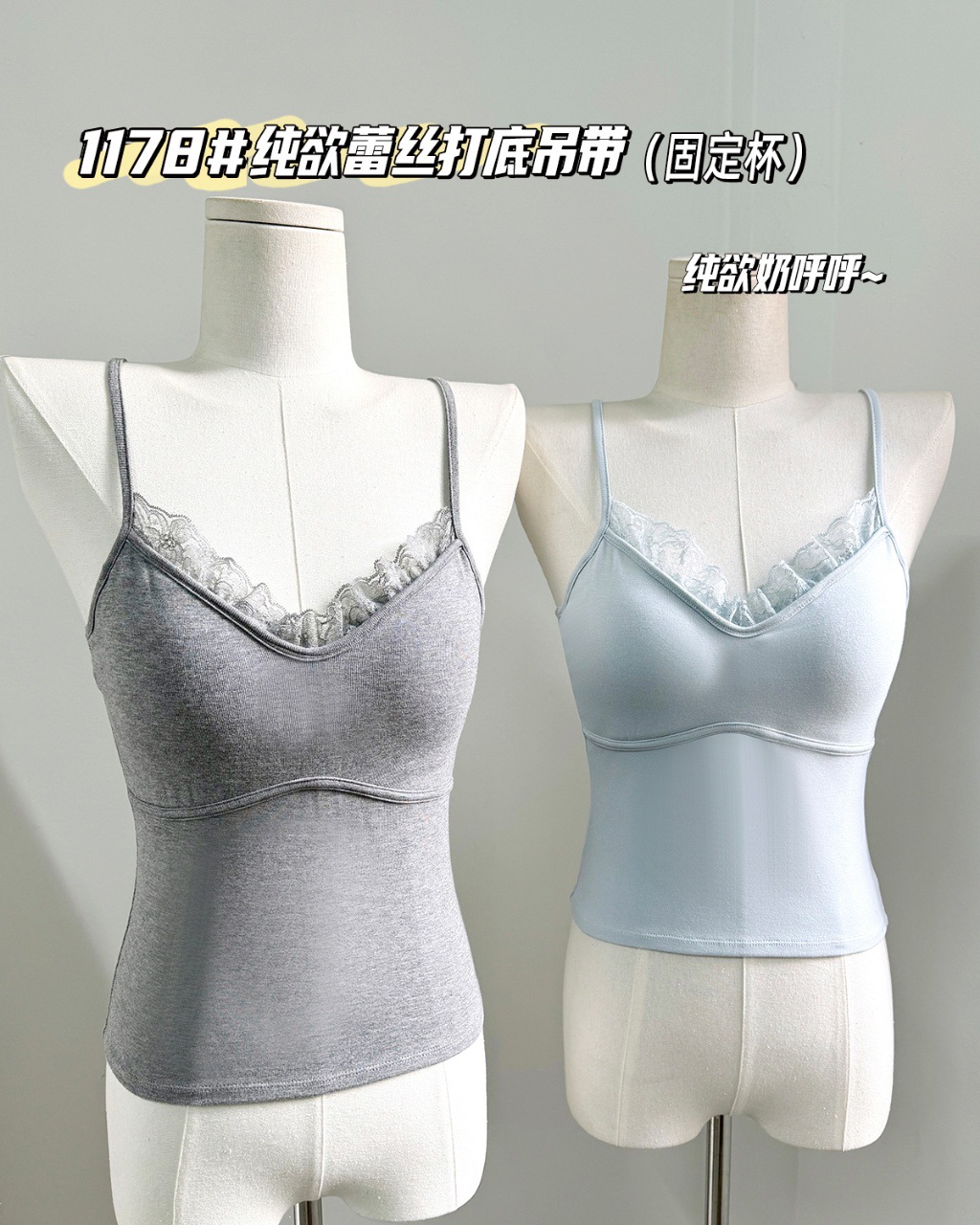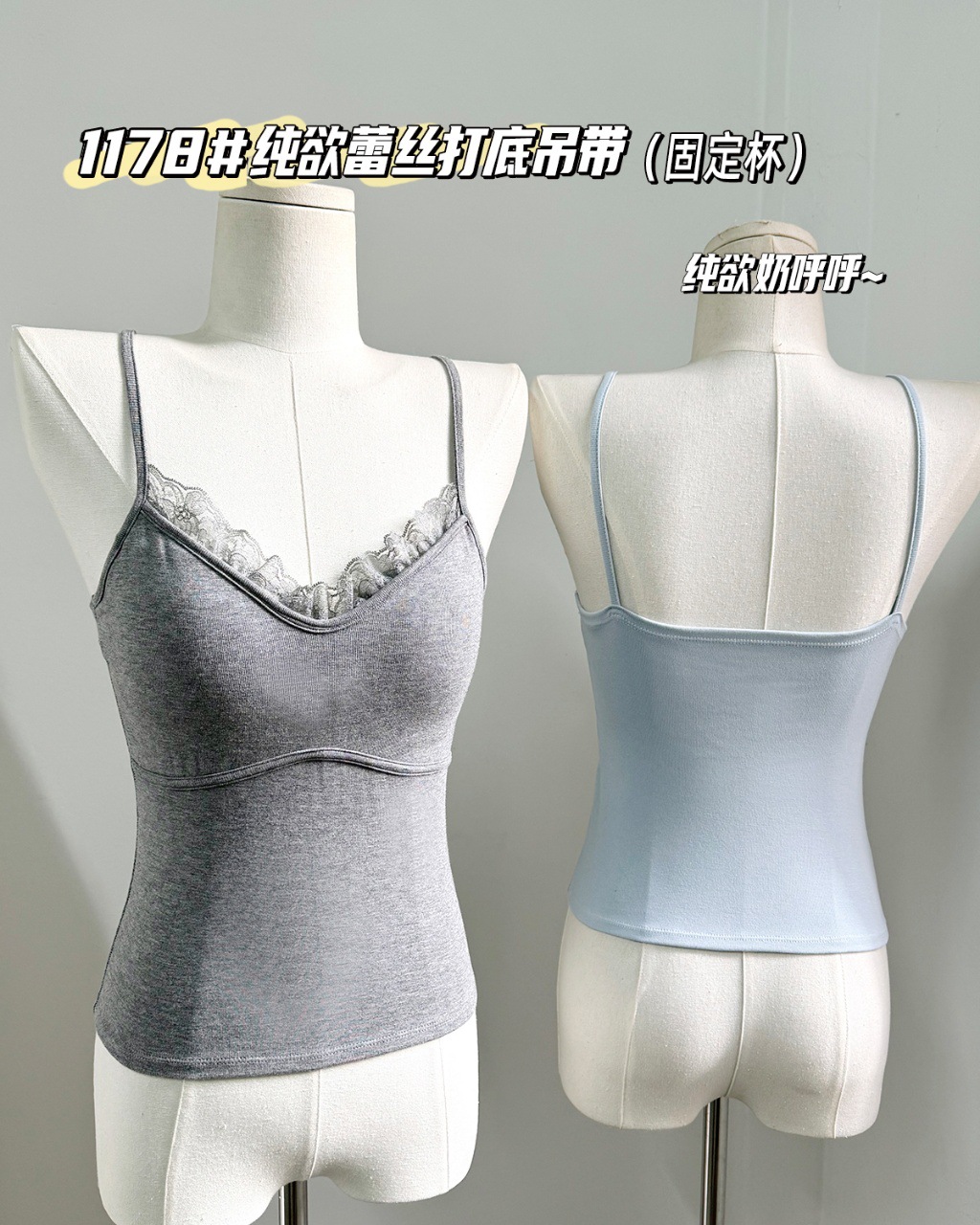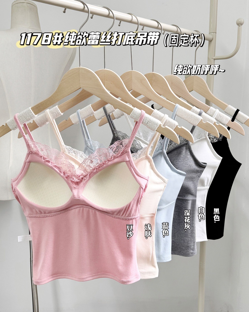 1178 # 봄 새로운 순수한 부드러운 스타일 레이스베이스 카미솔 여성용 내부 원피스 고정 가슴 패드