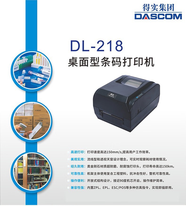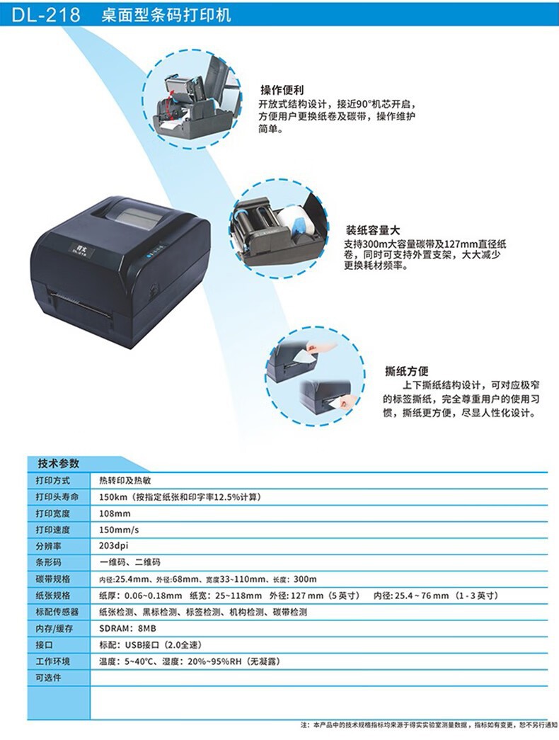 실제 DL-218 UHF RFID 라벨 바코드 프린터 열 열 전송