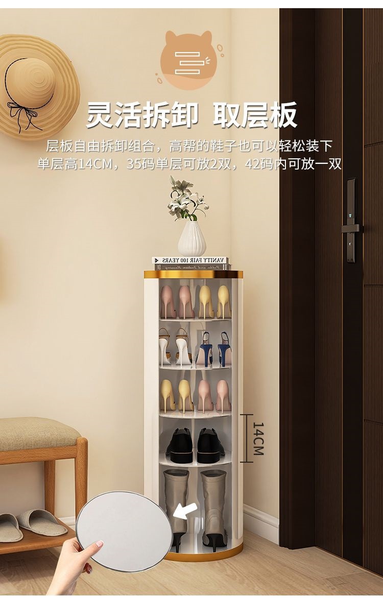 2025 새로운 스타일 회전 신발 캐비닛 라운드 가정용 출입구 신발 랙 벽면 복도 설치 무료 슈퍼 좁은스토어 가기