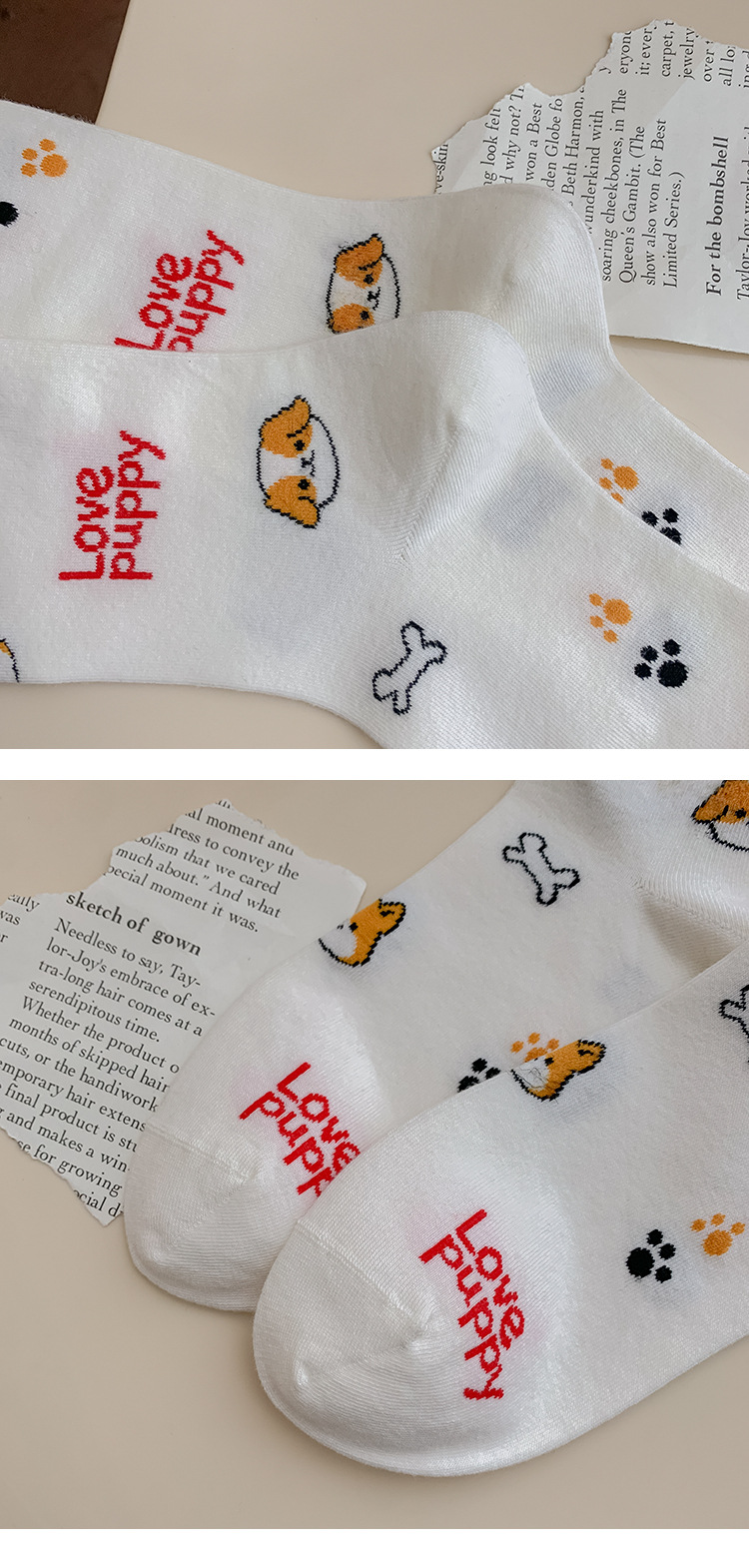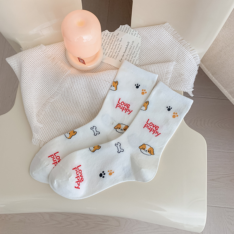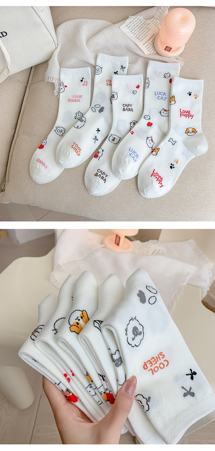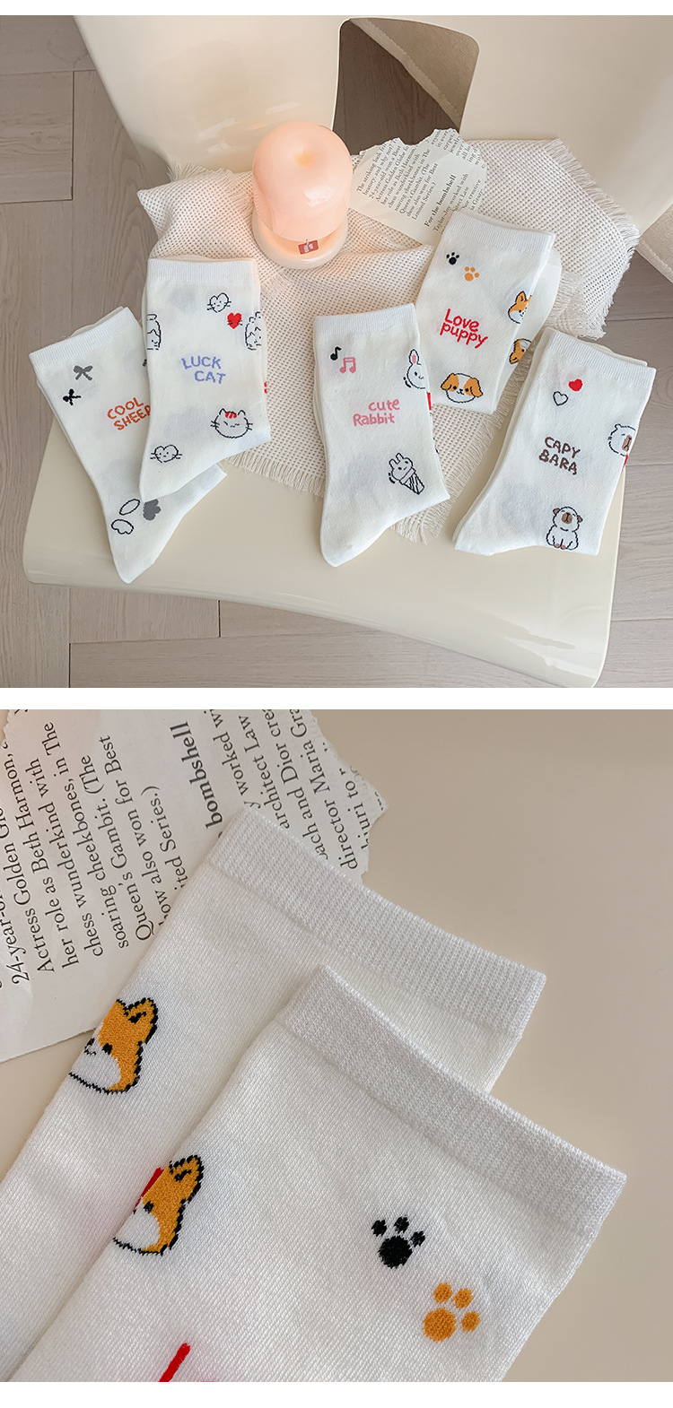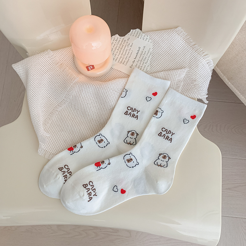 귀여운 만화 흰색 양말 여성의 봄과 가을 중간 길이 양말 일본 스타일 달콤한 대학 스타일 Instagram 스타일 트렌디 한 올 매치 스타킹