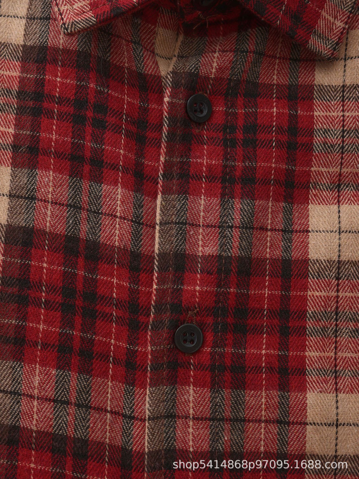 유럽과 미국 남성 플러스 사이즈 셔츠 아마존 AliExpress 대외 무역 크기 남성 의류 플란넬 Plaid 긴 소매 셔츠