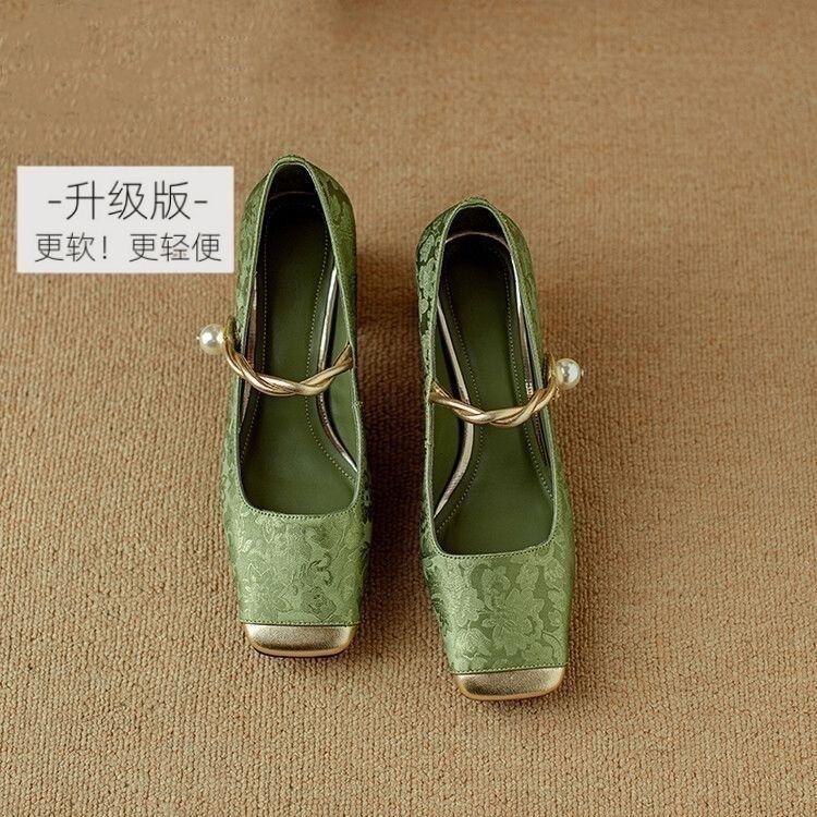 봄 2024 새로운 중국 스타일 Guofeng 여성 신발 싱글 신발 스퀘어 헤드 메리 제인 신발 한 단어 얕은 입 인터넷 축하 핫 싱글 신발