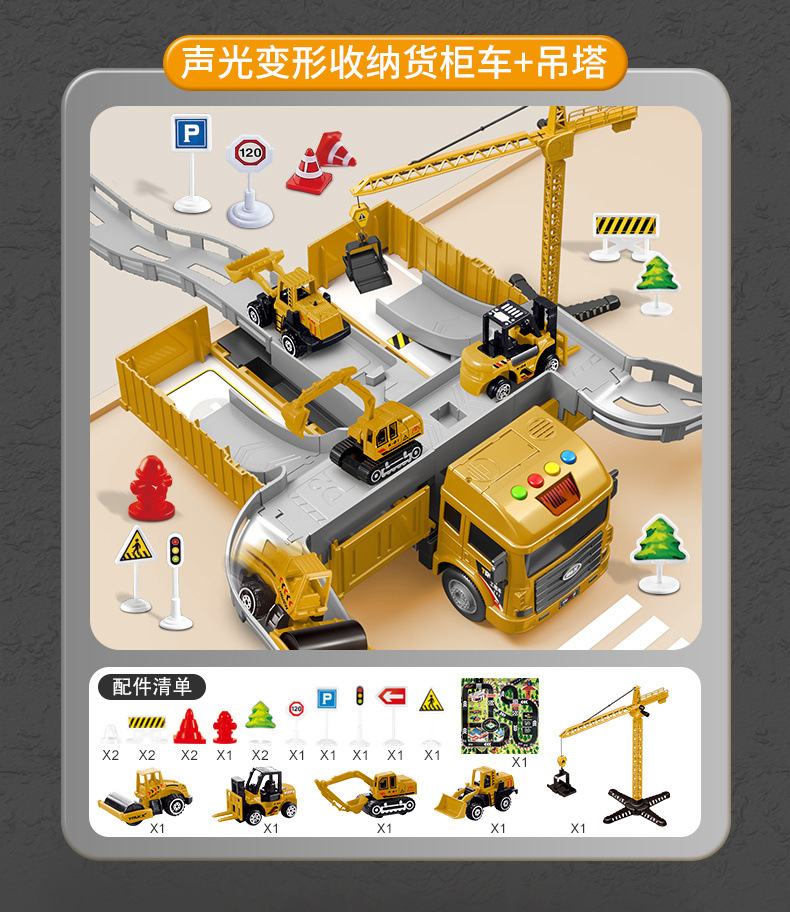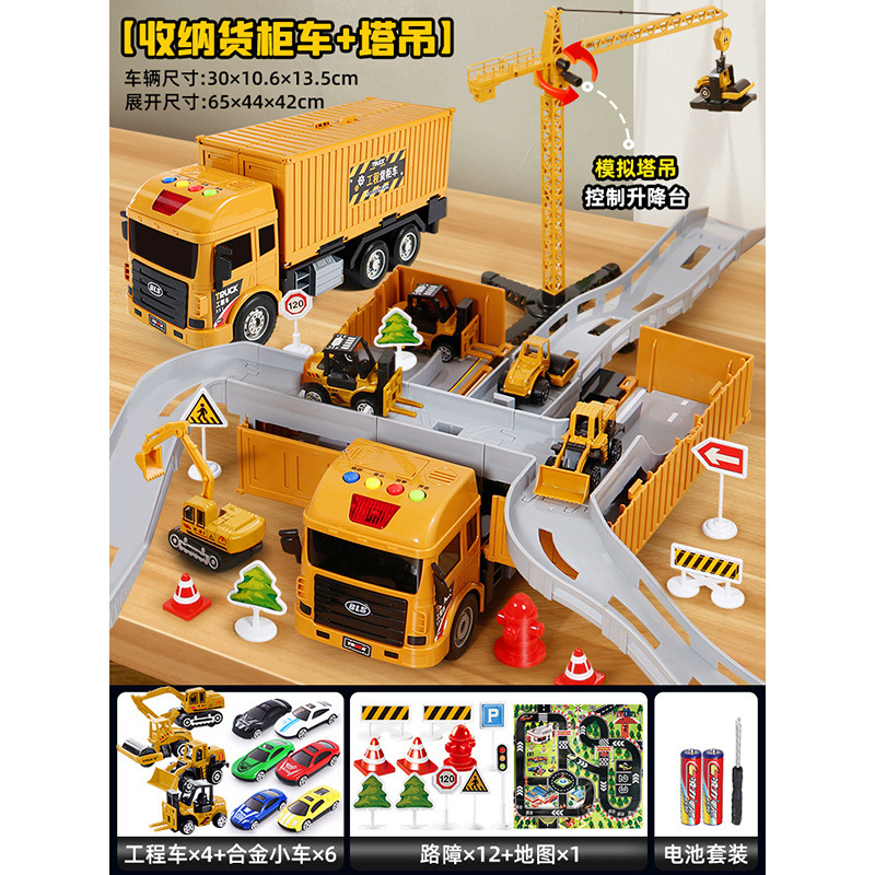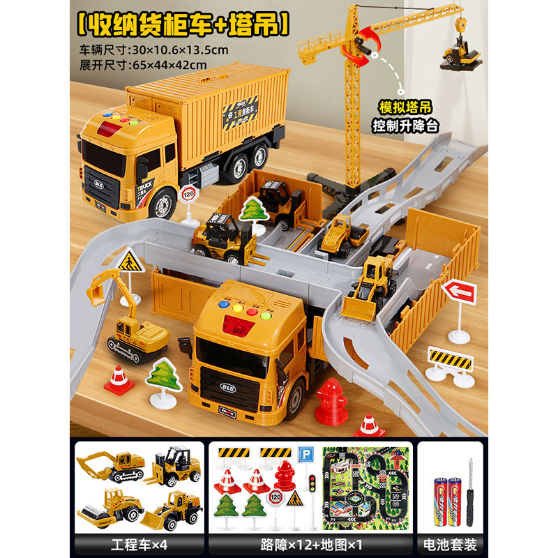 어린이 크레인 장난감 소년 대형 타워 크레인 트랙 컨테이너 트럭 트럭 엔지니어링 트럭 합금 자동차 세트 로딩 카