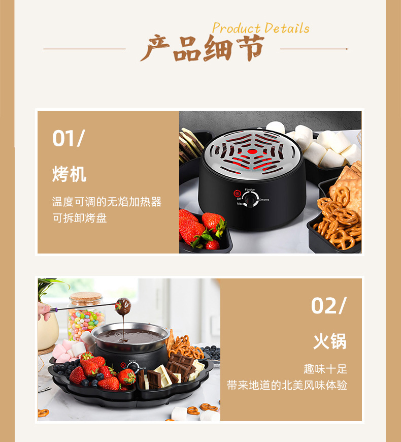 북미 크로스 국경 패션 단순 2 in 1 세트 초콜릿 전기 뜨거운 냄비 녹는 냄비 파티 파티 파티 구이 솜사탕 기계스토어 가기