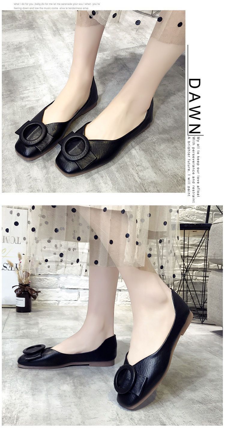 여성 플랫 슈즈 2022 새로운 한국식 올 매치 펌프 소프트 솔 비 슬립 빈 슈즈 스퀘어 발가락 얕은 입 인터넷 인기 여성 싱글 슈즈스토어 가기