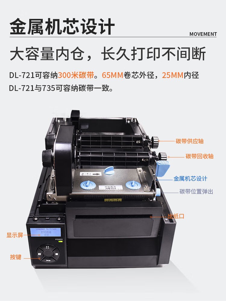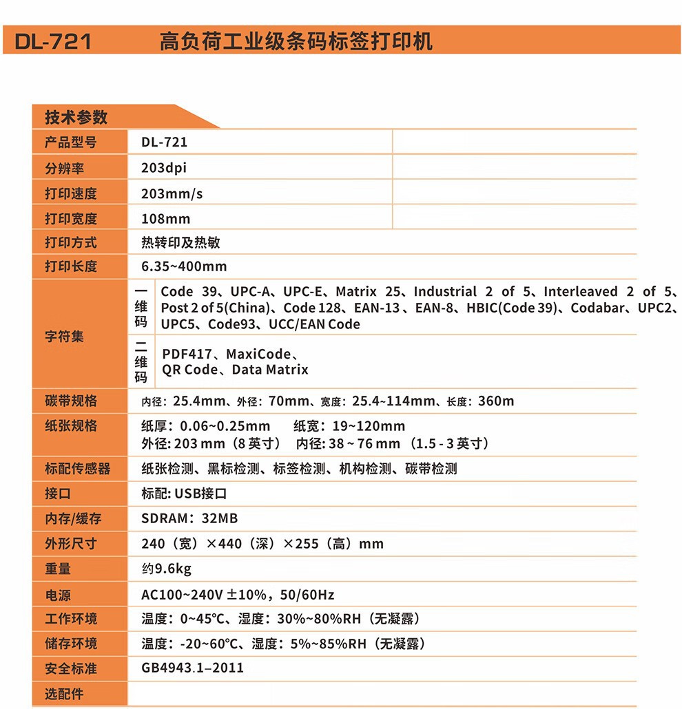 Deshi DL-721 산업 등급 UHF RFID 라벨 바코드 프린터 열 열 전송