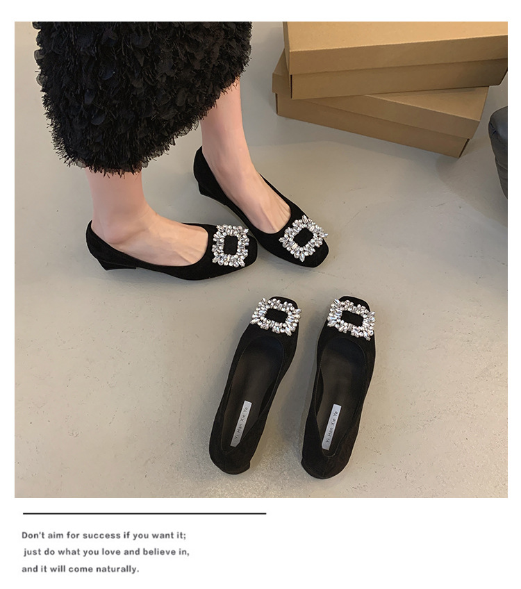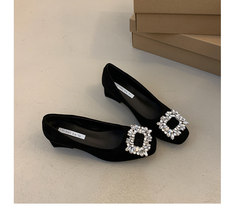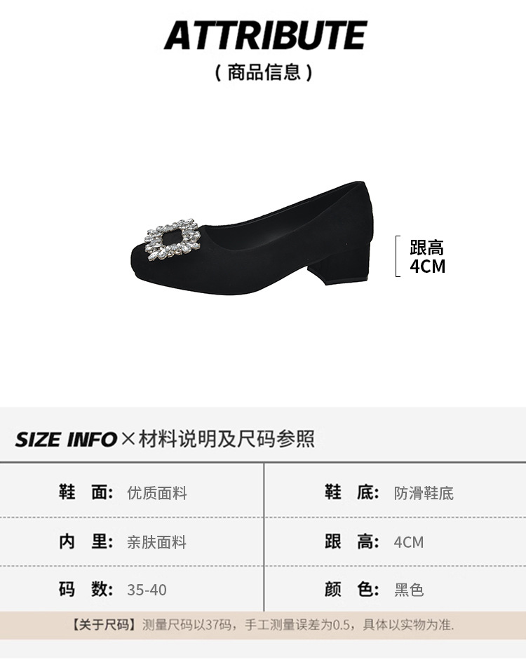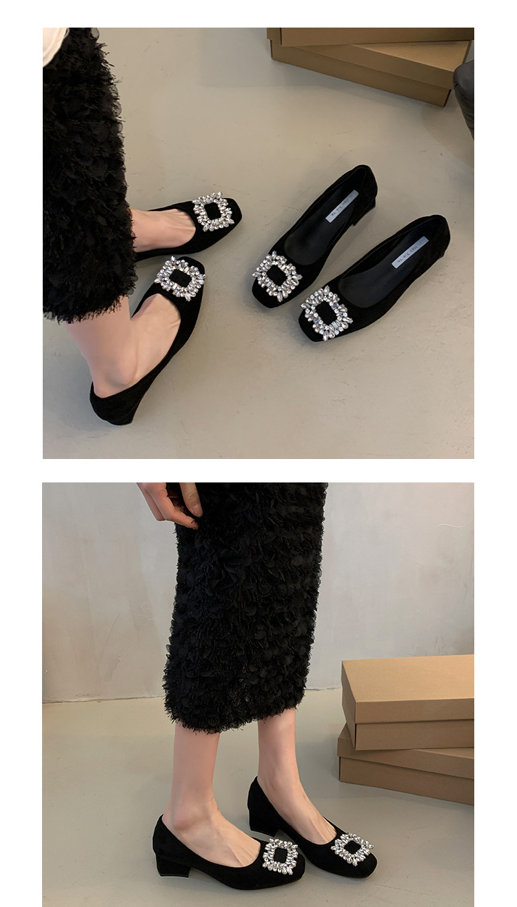 Chunky Heel Square Head Rhinestone 고급 싱글 레이어 신발 여성 신발 2025 새로운 봄 및 여름 패션 하이힐 올 매치 통근 신발