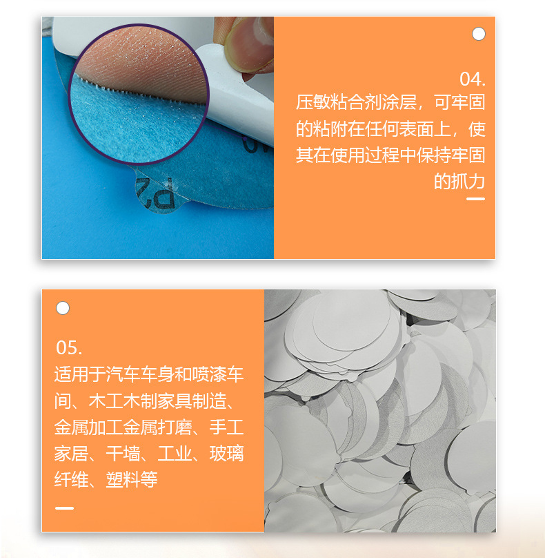접착제가있는 쉽게 찢을 수있는 맞춤형 흰색 사포 5inch 비 다공성 목재 가구 퍼티 그레이 페인트 표면 연삭 사포 접착제스토어 가기