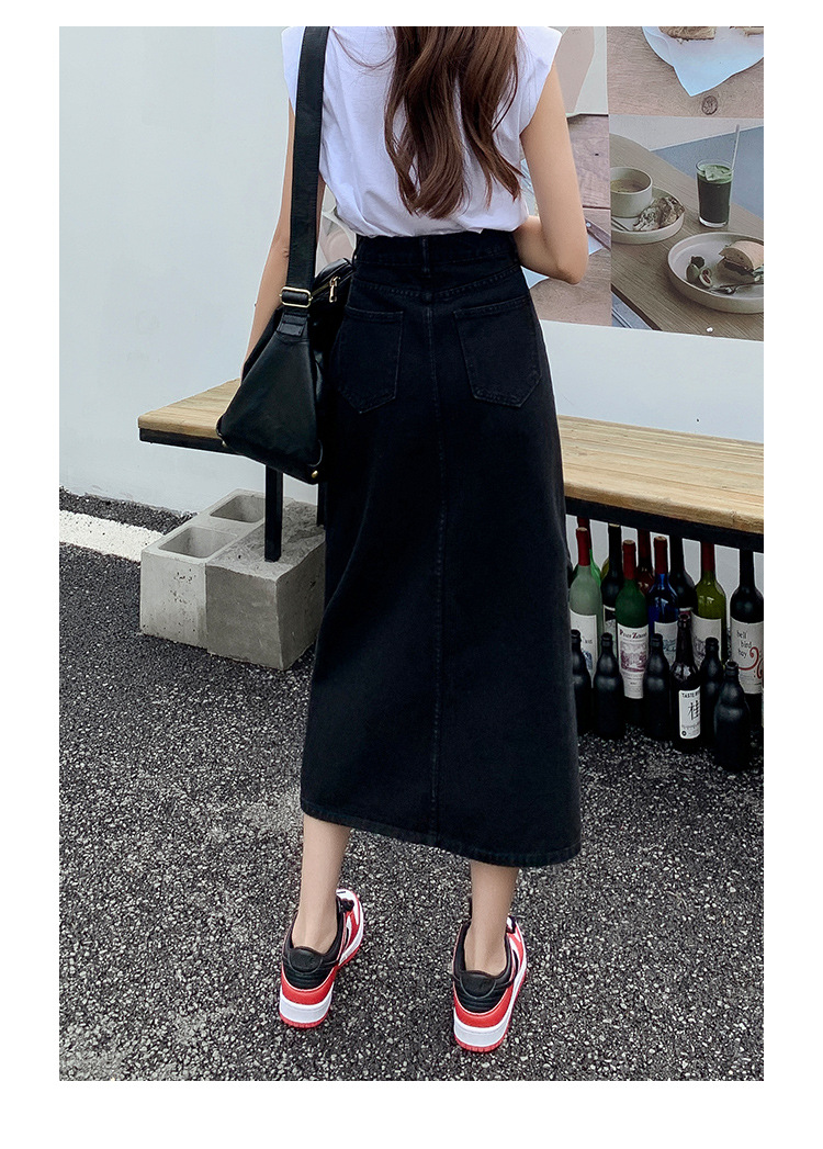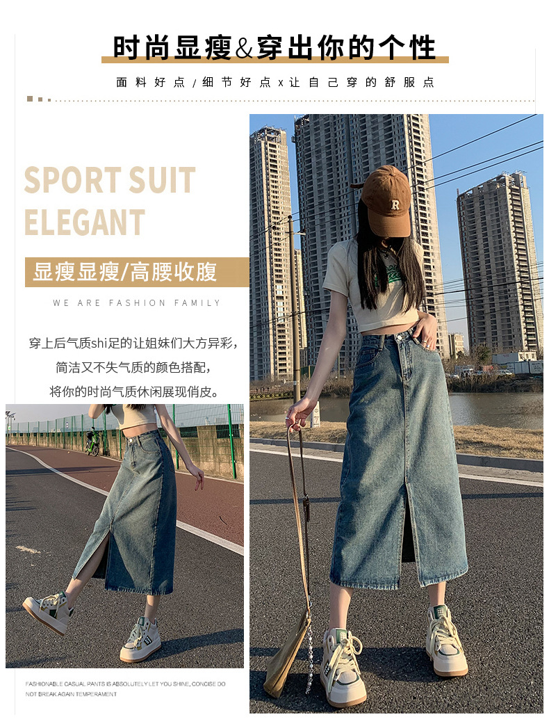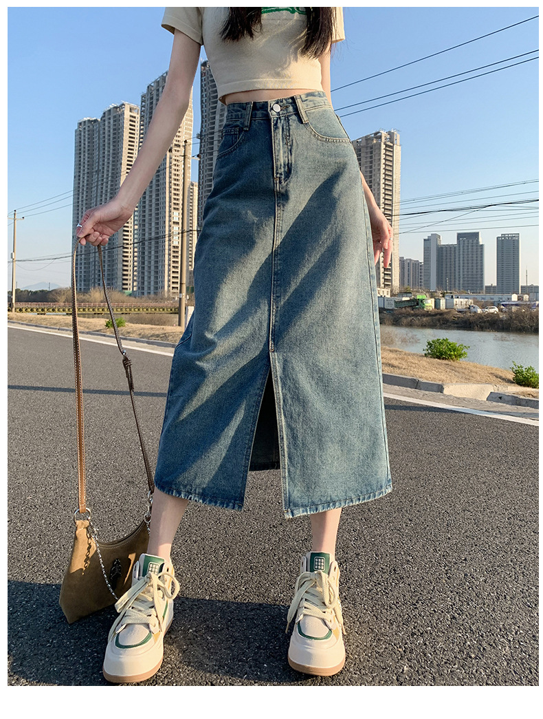 데님 치마 여자 봄 높은 허리 엉덩이 치마 2025 새로운 레트로 스트레이트 루즈 A 자형 중간 길이 오버 스커트스토어 가기