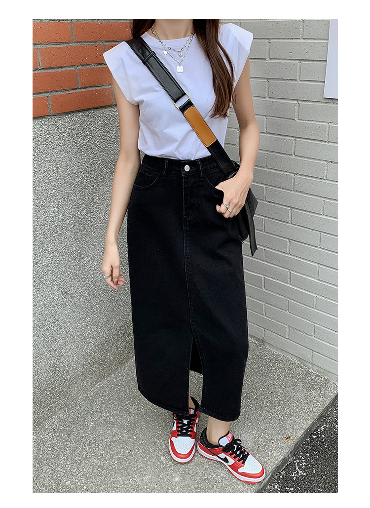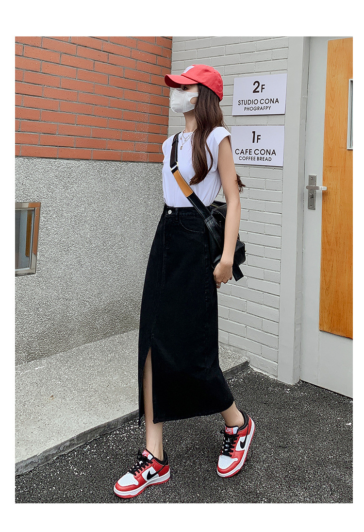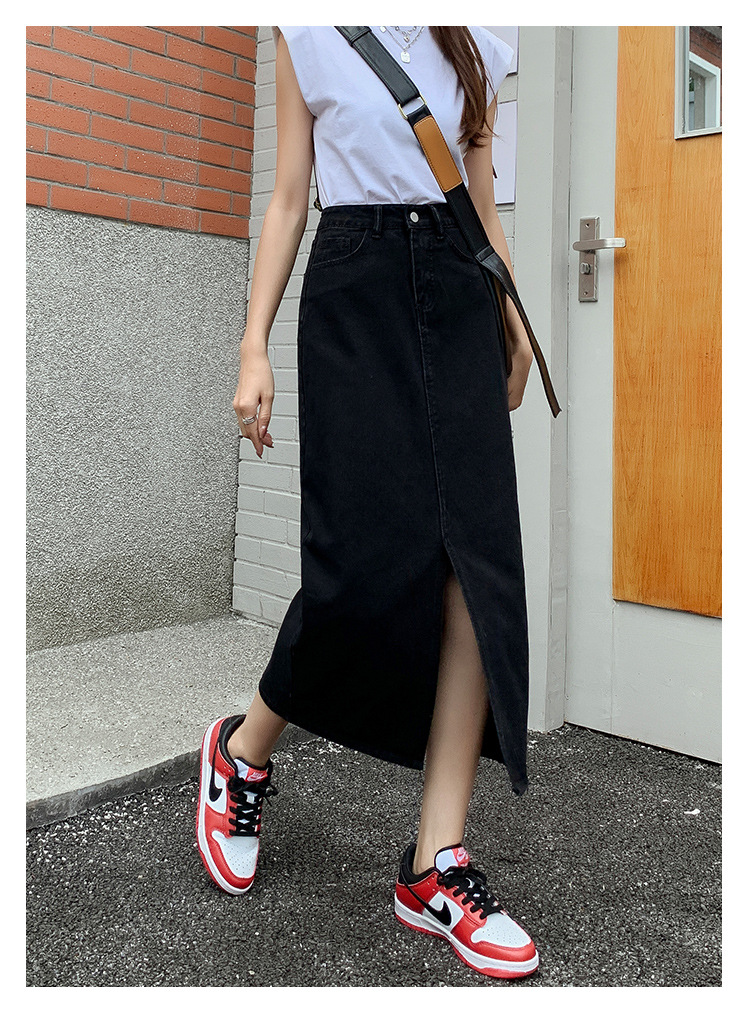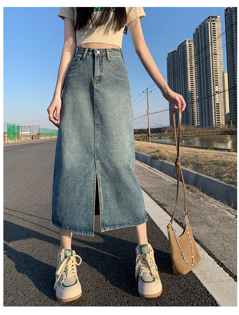 데님 치마 여자 봄 높은 허리 엉덩이 치마 2025 새로운 레트로 스트레이트 루즈 A 자형 중간 길이 오버 스커트