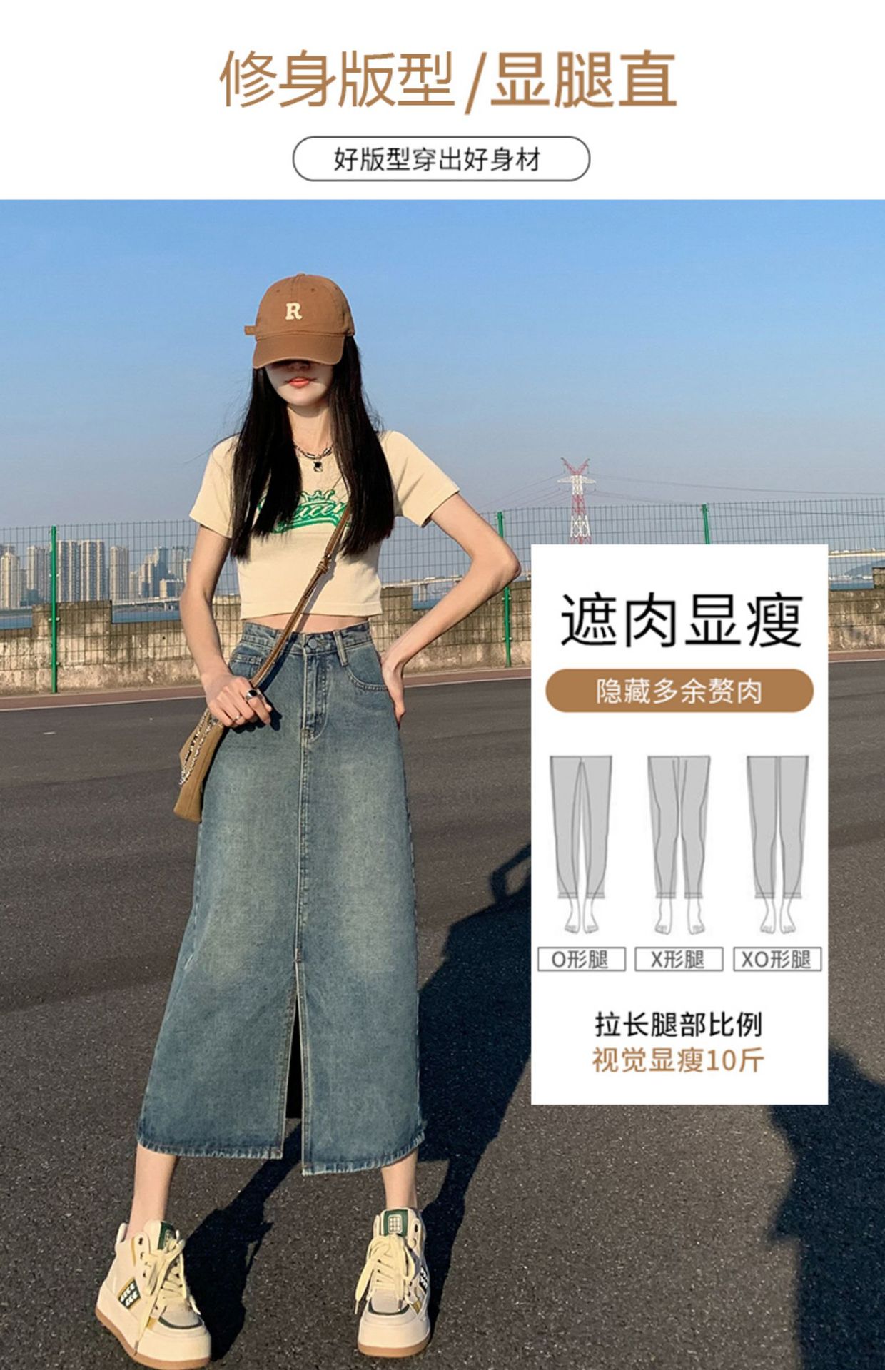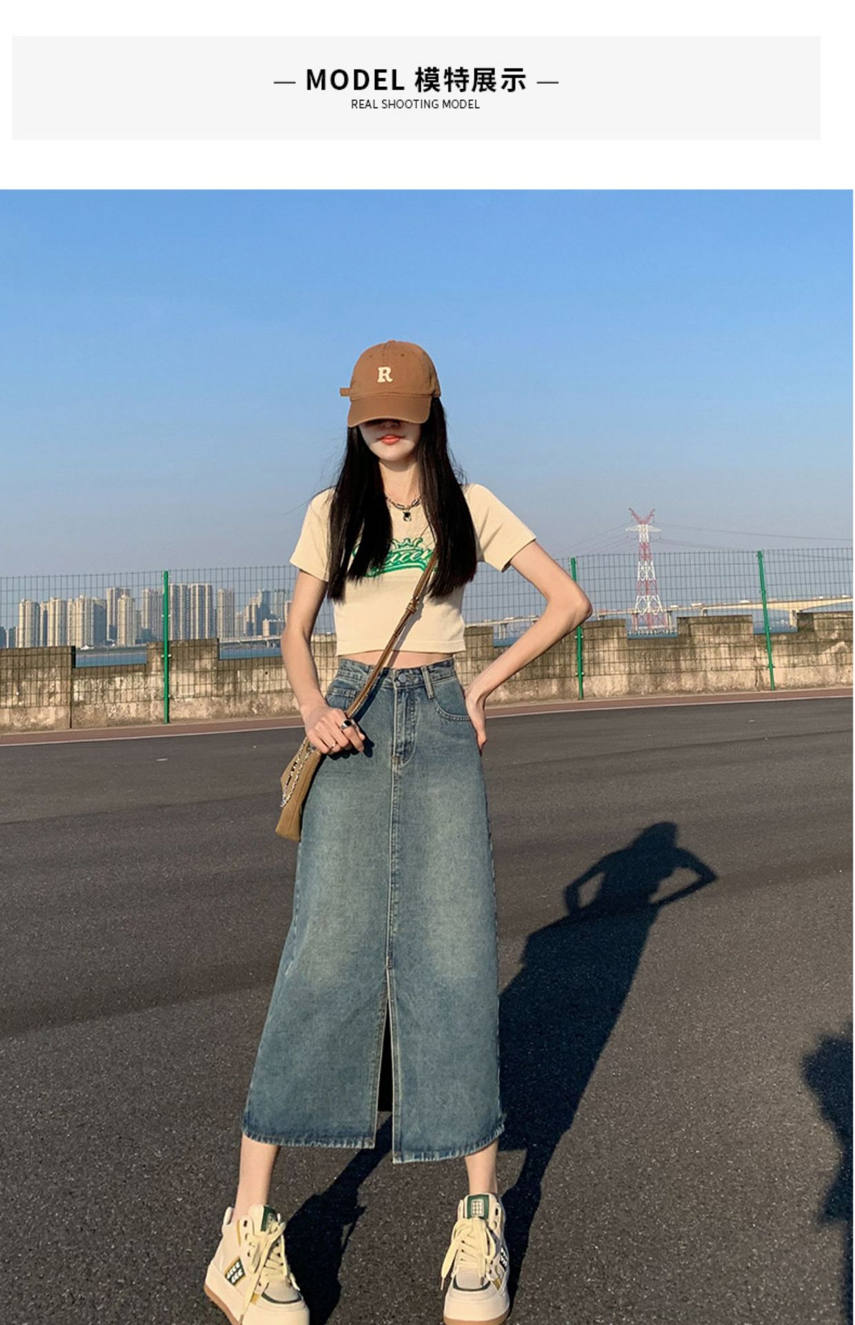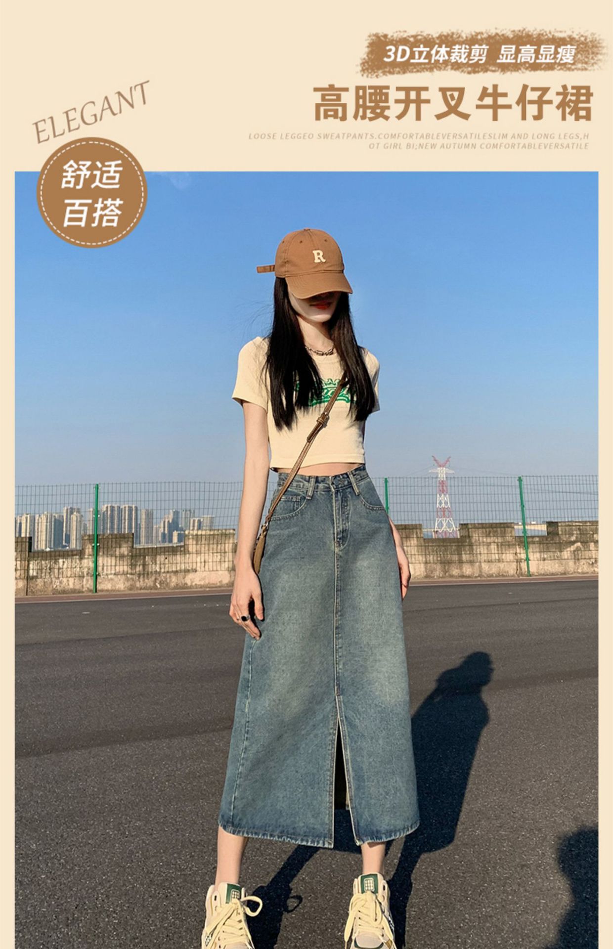 데님 치마 여자 봄 높은 허리 엉덩이 치마 2025 새로운 레트로 스트레이트 루즈 A 자형 중간 길이 오버 스커트