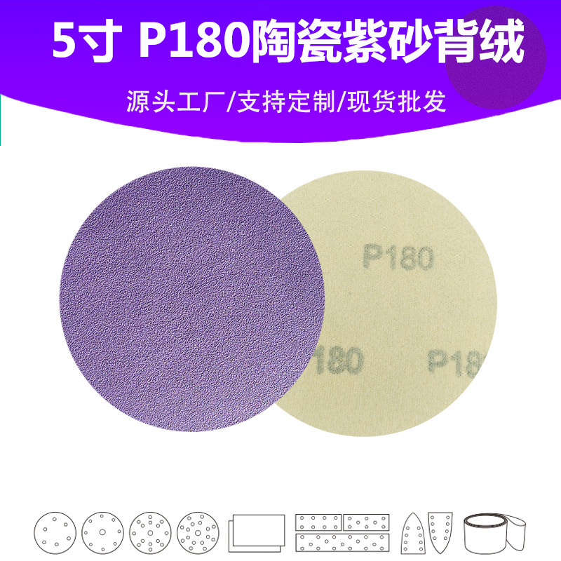 5 인치 세라믹 보라색 모래 P180 메시 플럭킹 웨이퍼 페인트 표면 연마 특수 하이 퀄리티 사포