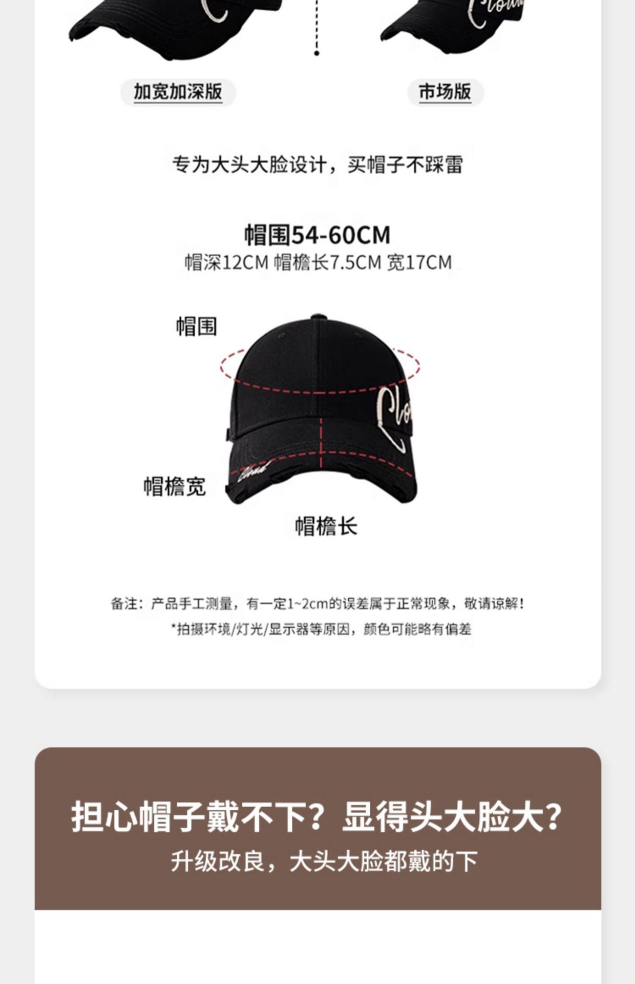 Mclelland 모자 여자 2025 년 여름 하드 탑 모자 대형 헤드 사이즈 엑스트라 와이드 한국 야구 모자스토어 가기