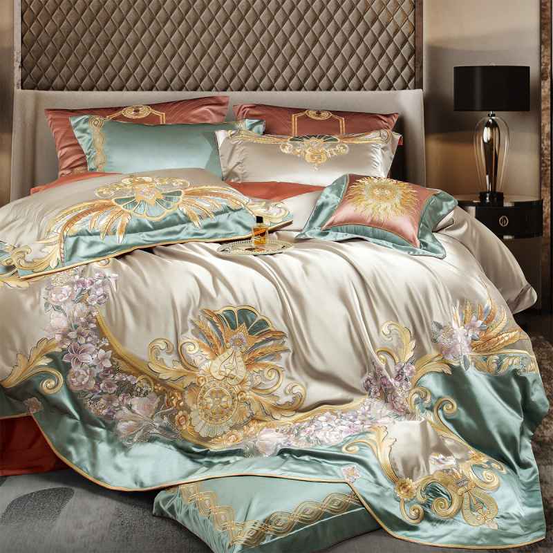 유럽 스타일 140 고밀도 퀼트 커버 4 피스 세트 60 피스 세트 긴 스테이플 코튼 럭셔리 자수 코튼 베드 커버 빌라