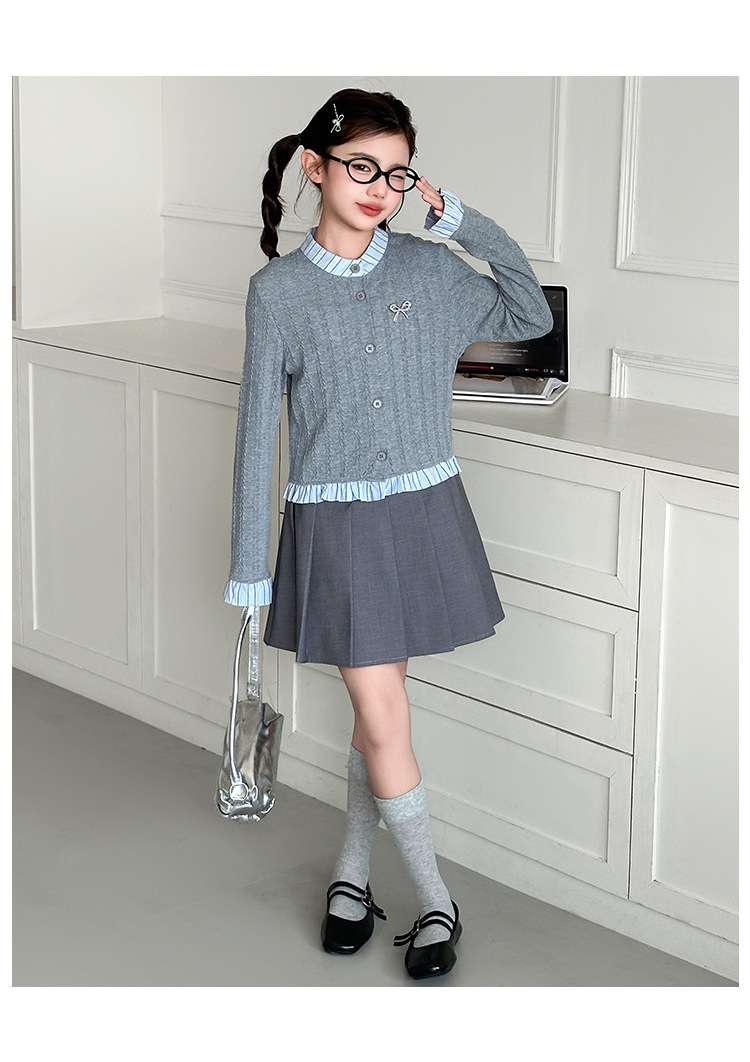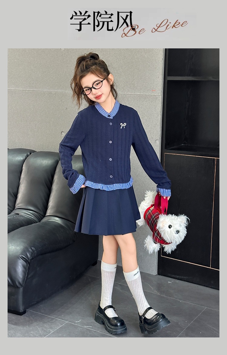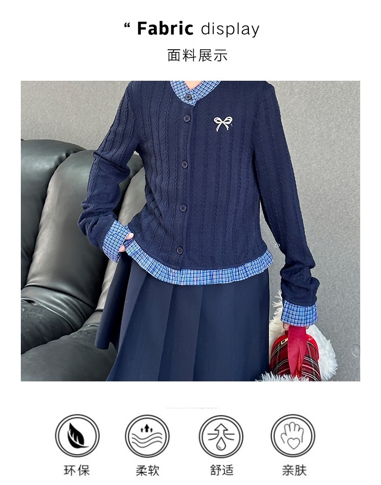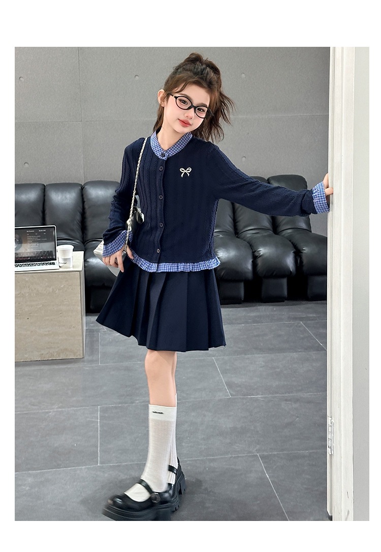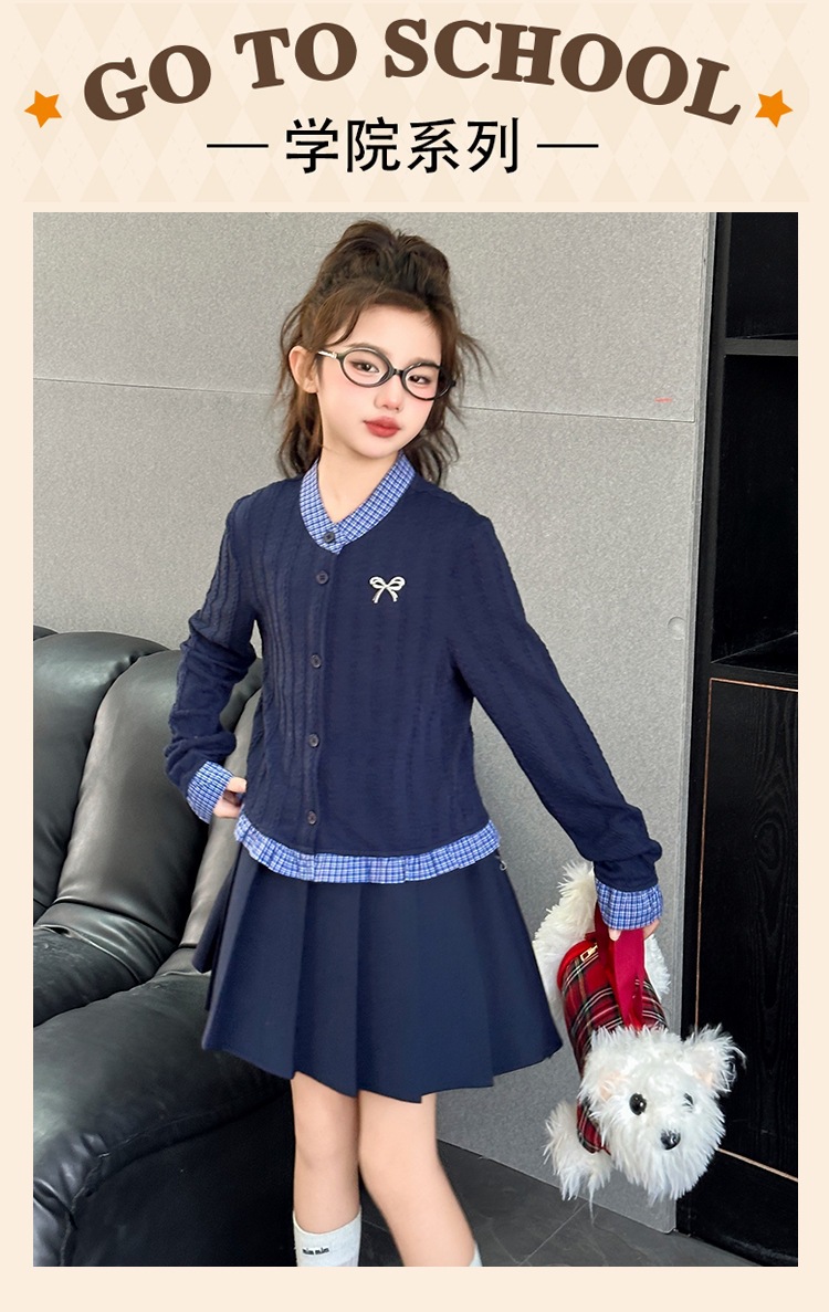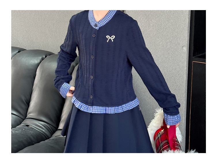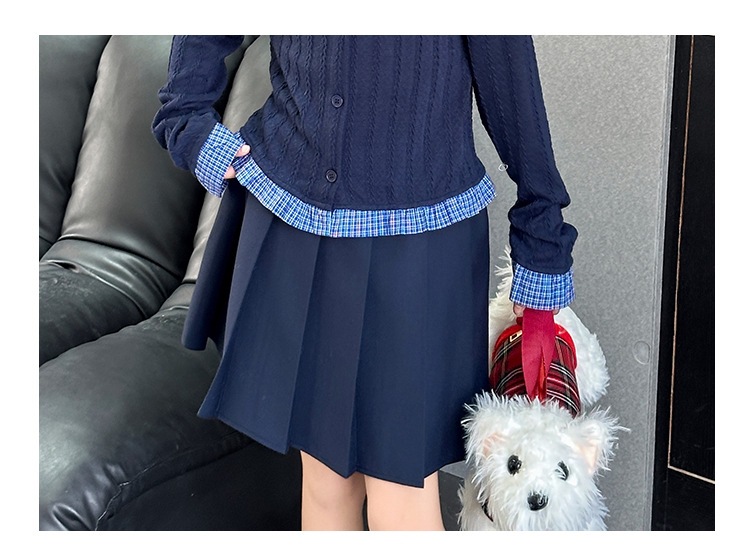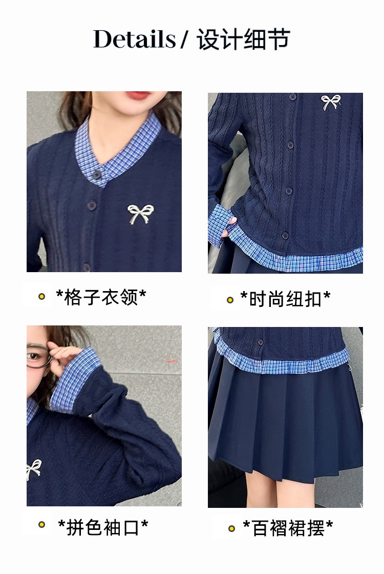 여자 대학 스타일 세트 봄 2025 새로운 스타일 서양식 캐주얼 가짜 투피스 니트웨어 주름 치마 투피스 세트스토어 가기